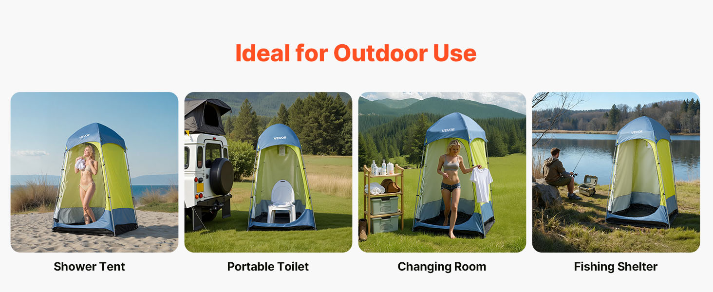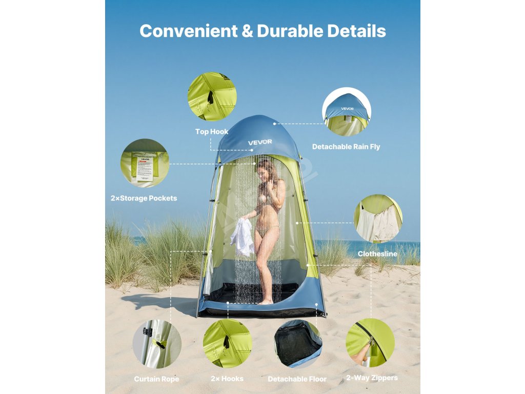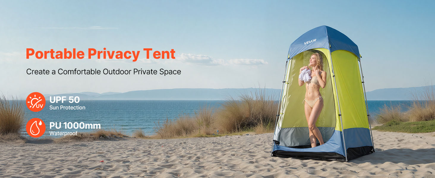 Náš súkromný stan je ľahký a prenosný, vhodný na kempovanie, výlety na pláž, fotografovanie alebo rybolov. Poskytuje súkromný priestor na prezliekanie, sprchovanie alebo oddych vonku.