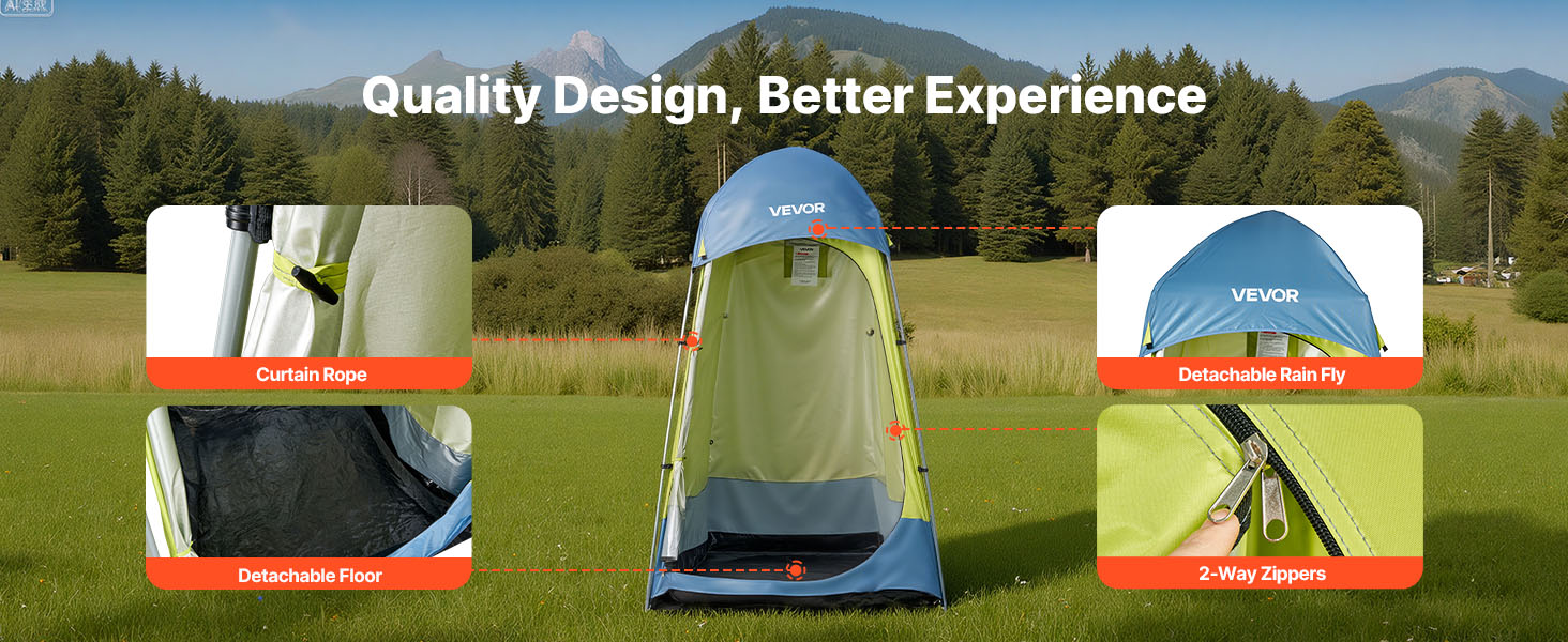 Odnímateľná plachta proti dažďu pomáha ľahko zvládnuť ľahké dažďové prehánky, zatiaľ čo odnímateľná podlahová rohož funguje dobre na tráve a piesku a je ľahko čistiteľná. Tieto flexibilné dizajny umožňujú sprchovému stanu prispôsobiť sa rôznym vonkajším prostrediam.