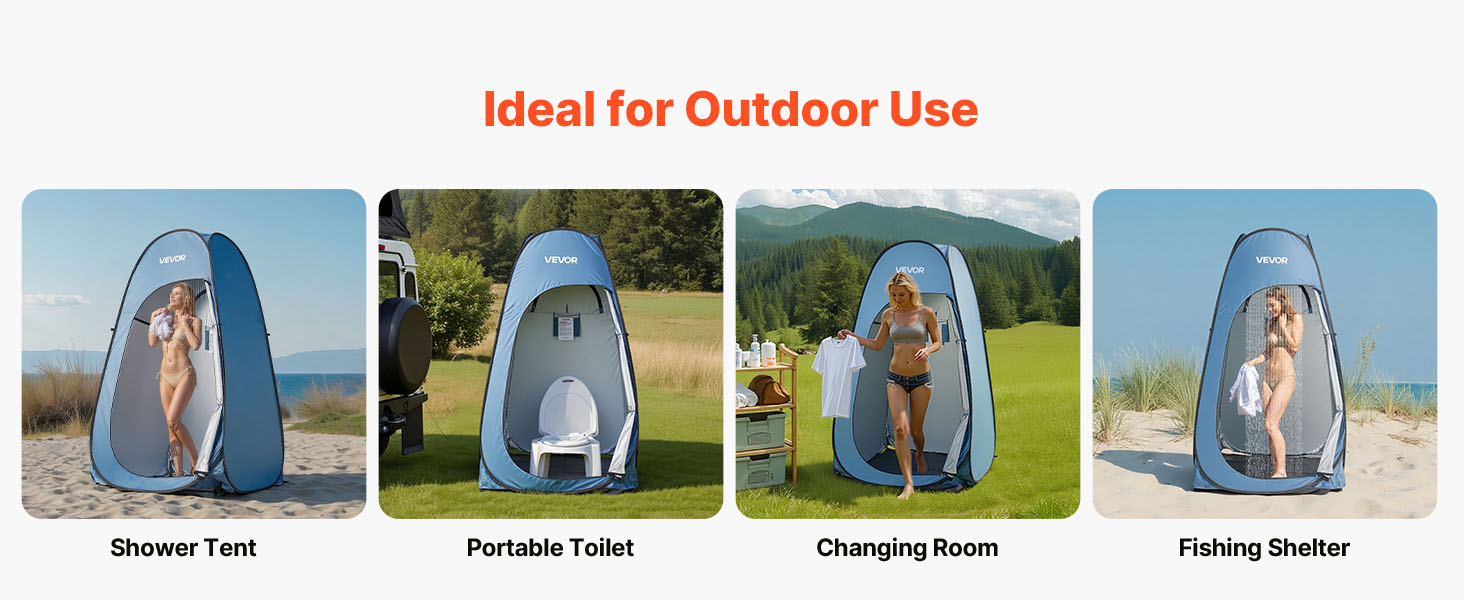 Náš sprchový stan je ľahký a prenosný, vhodný na kempovanie, výlety na pláž, fotografovanie alebo rybolov. Poskytuje súkromný priestor na prezliekanie, sprchovanie alebo oddych vonku.