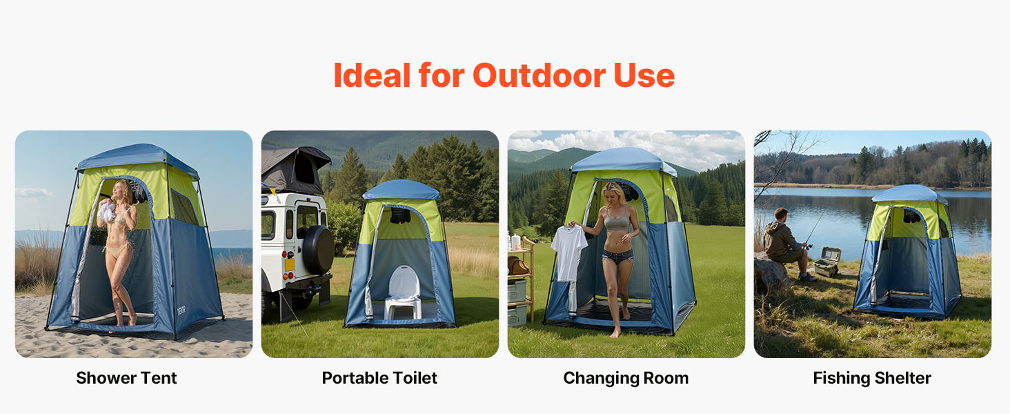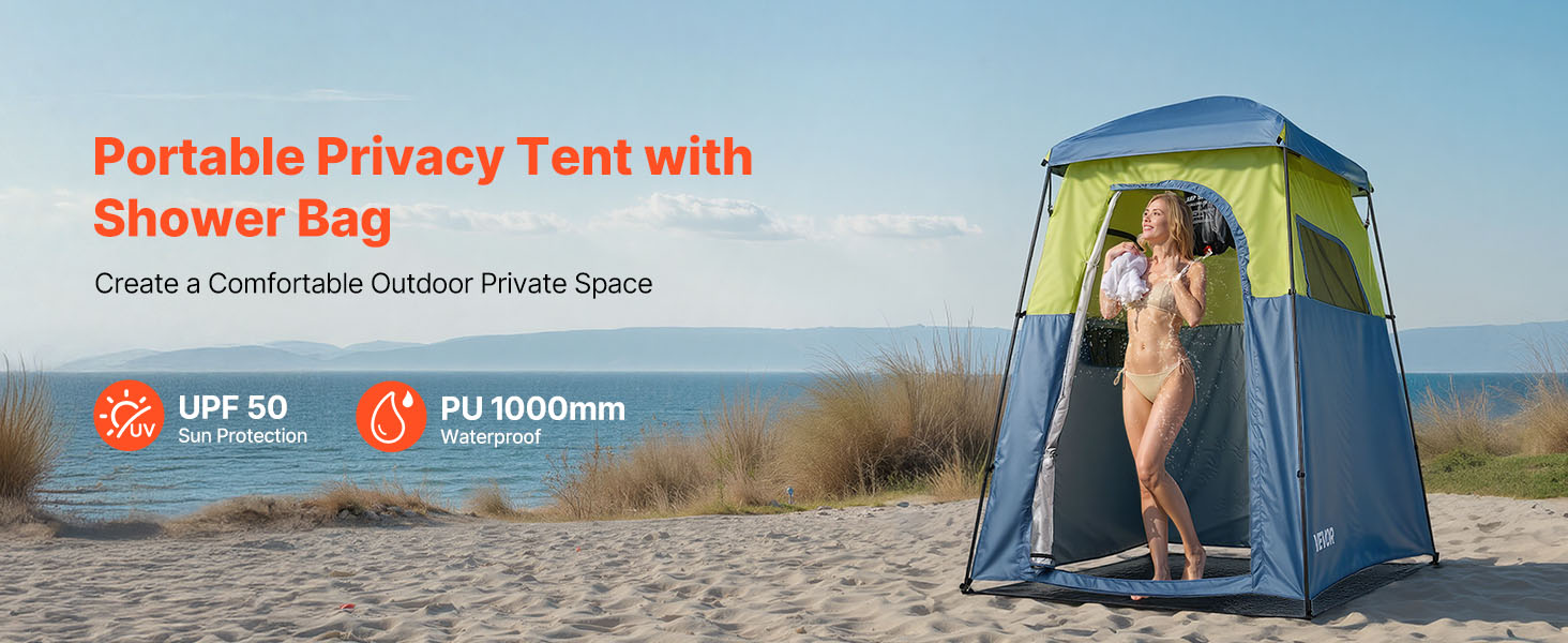 Náš súkromný stan je ľahký a prenosný, vhodný na kempovanie, výlety na pláž, fotografovanie alebo rybolov. Poskytuje súkromný priestor na prezliekanie, sprchovanie alebo oddych vonku.
