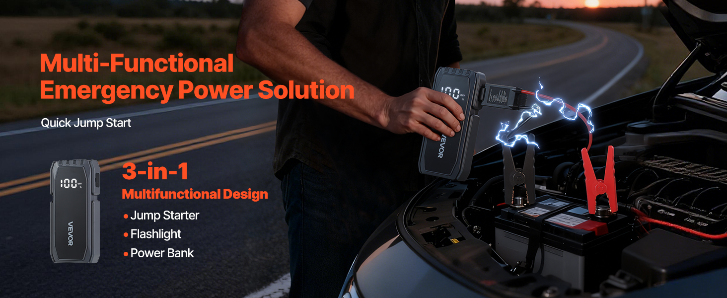 Tento univerzálny produkt je viac než len štartér pre autobatérie, funguje aj ako baterka a powerbanka. Kompaktný, výkonný a praktický, je to vaše komplexné núdzové riešenie pre kempovanie, jazdu v teréne, nočné prechádzky a náhle výpadky prúdu.
