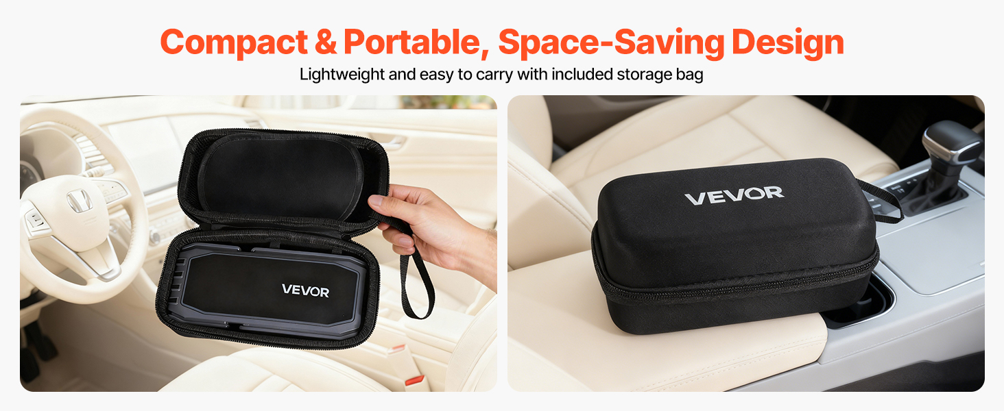 Tento prenosný štartér má malé rozmery, ale vysoký výkon a ľahko sa zmestí do vášho auta, bez toho aby zaberal miesto. Je dodávaný s praktickou taškou na uloženie, vďaka čomu ho môžete ľahko prenášať kamkoľvek cestujete.