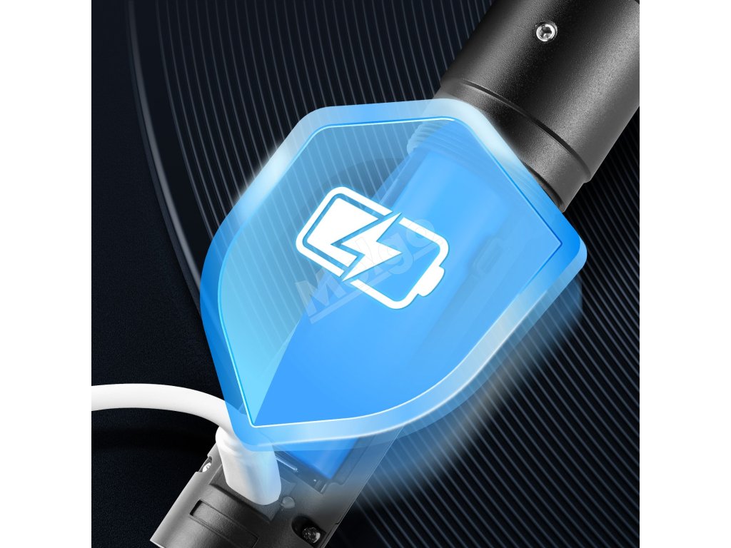 Tento svetelný meč využíva inteligentný systém riadenia nabíjania. Po úplnom nabití sa kontrolka automaticky vypne, aby sa zabránilo prebíjaniu, čím sa predĺži životnosť batérie a zaistí sa vaša bezpečnosť. Počas nabíjania kontrolka bliká na modro, čo uľahčuje monitorovanie.
