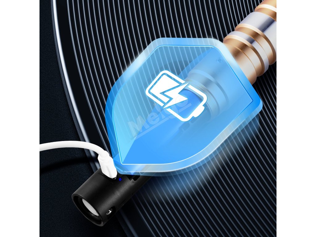 Tento svetelný meč využíva inteligentný systém riadenia nabíjania. Po úplnom nabití sa kontrolka automaticky vypne, aby sa zabránilo prebíjaniu, čím sa predĺži životnosť batérie a zaistí sa vaša bezpečnosť. Počas nabíjania kontrolka bliká na modro, čo uľahčuje monitorovanie.