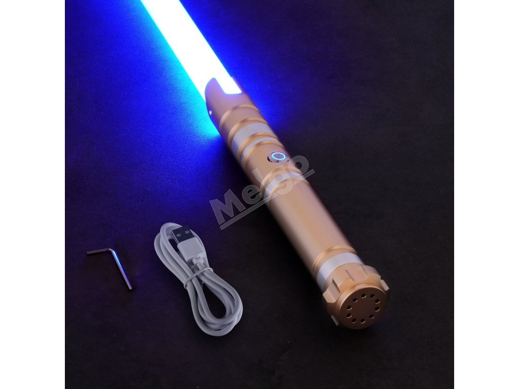Svetelný meč s 12 rgb farbami, fx zvukom, nabíjateľný, zlatý