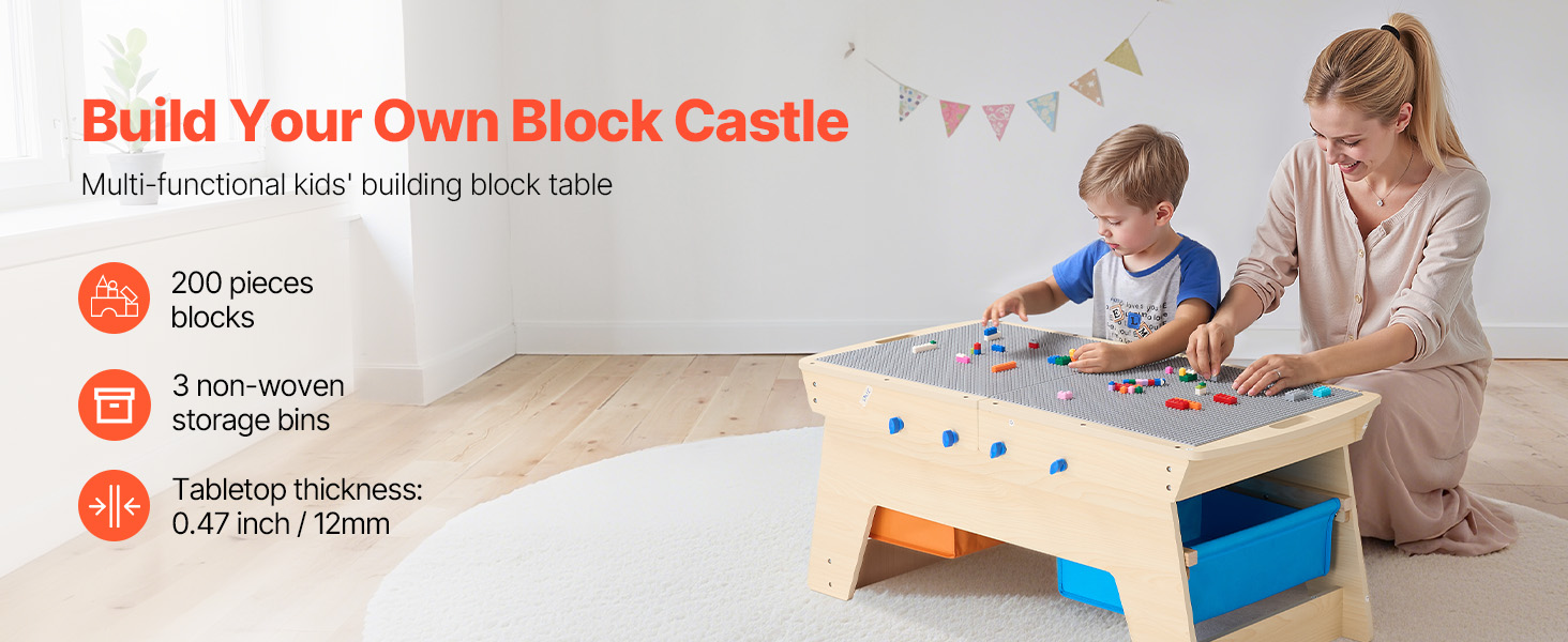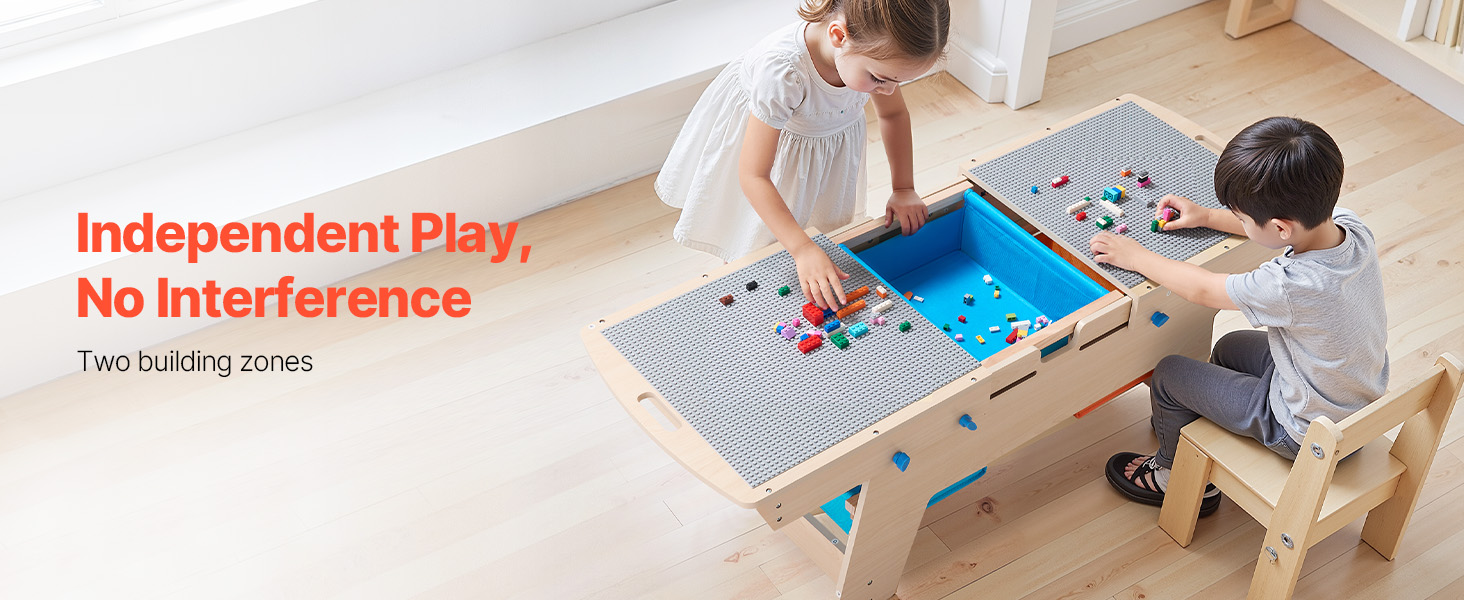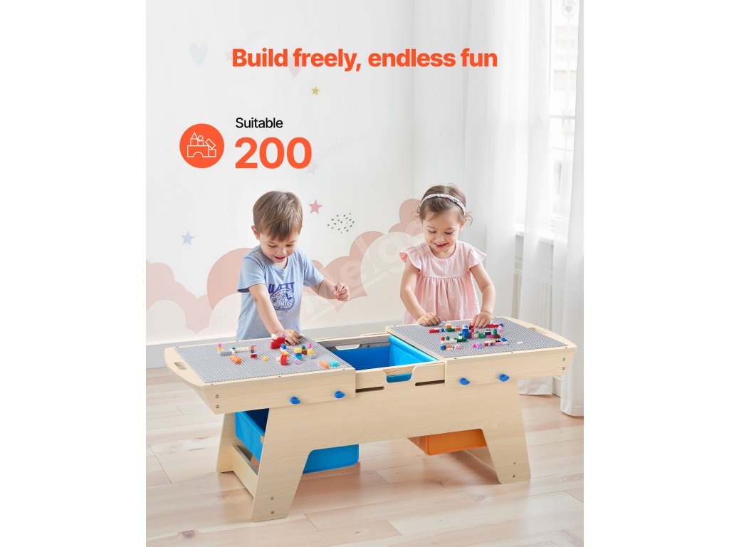 Tento stôl zo stavebných kociek je navrhnutý s obojstrannou doskou na stavanie, učenie alebo jedenie! Robustný drevený rám bude rásť spolu s vaším dieťaťom a podporí koordináciu rúk a očí a dobré návyky.