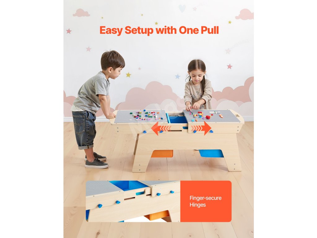 Stôl na aktivity pre deti je vybavený ľahko vysúvateľnými rukoväťami, vďaka ktorým sa zmení na dve samostatné hracie zóny! Deti môžu pracovať na svojich projektoch bez toho, aby sa navzájom rušili, čím získajú viac priestoru a znížia sa hádky.