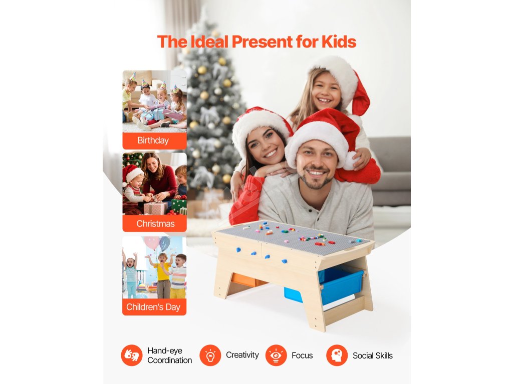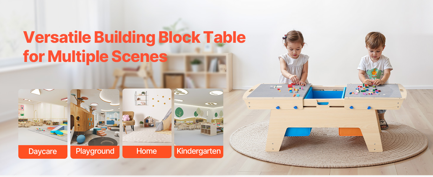 Tento viacúčelový stôl na hranie s aktivitami je ideálny do domácností, denných centier, materských škôl a na detské ihriská. Pomáha deťom s koordináciou a predstavivosťou, podporuje tímovú prácu a sociálne zručnosti pri spoločnej hre.