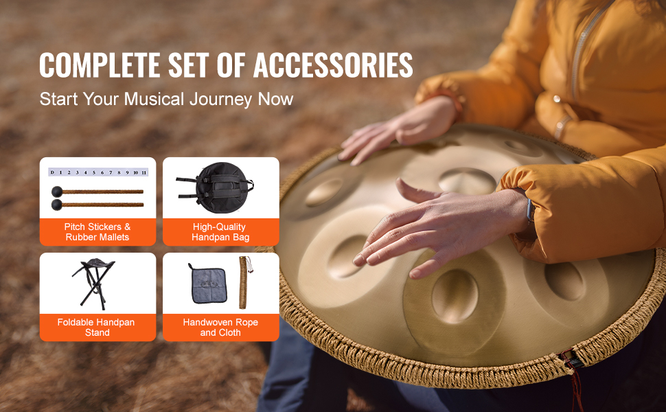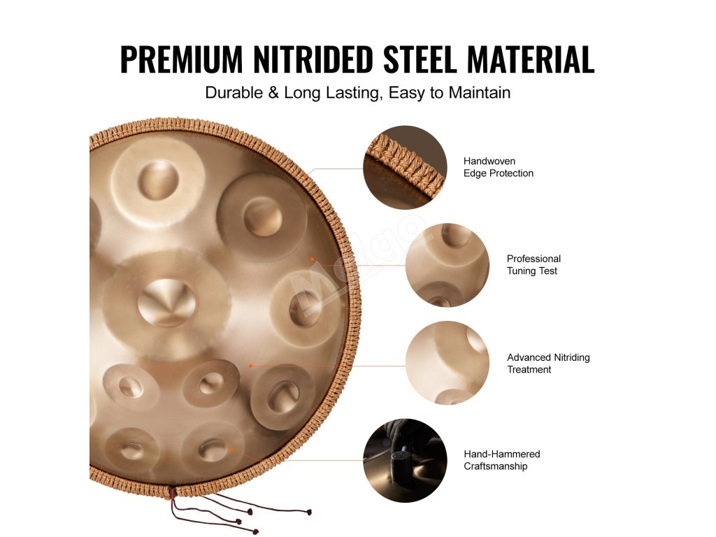 Každý handpan bubon je starostlivo ručne ladený, aby sa zabezpečila presnosť výšky tónu na extrémnej úrovni presnosti, čím poskytuje interpretovi výnimočnú hudobnú expresivitu a bohatý sluchový pôžitok.