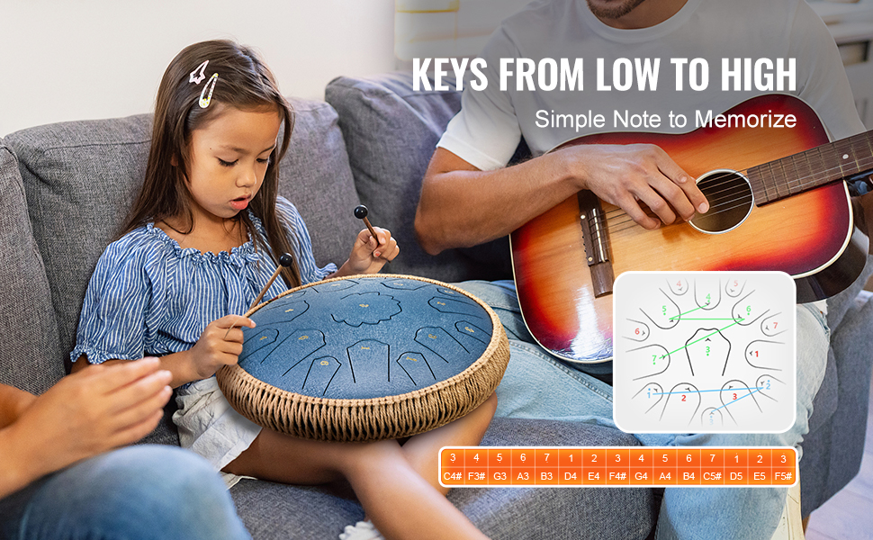 VEVOR 14 in Steel Tongue Drum 15 nôt D dur kľúč