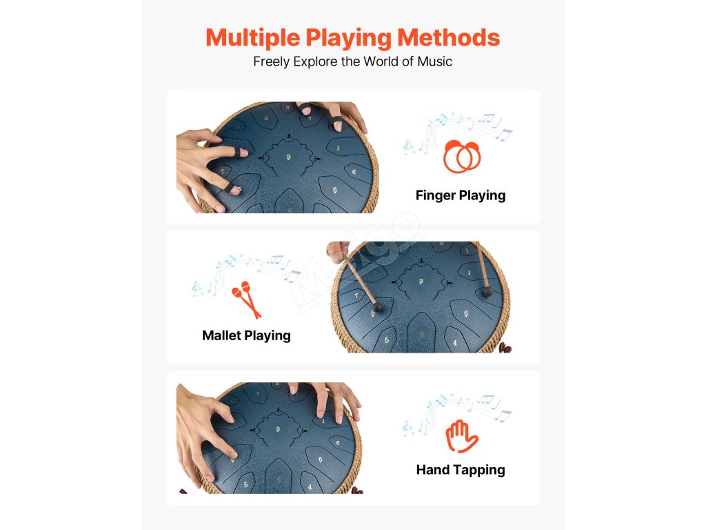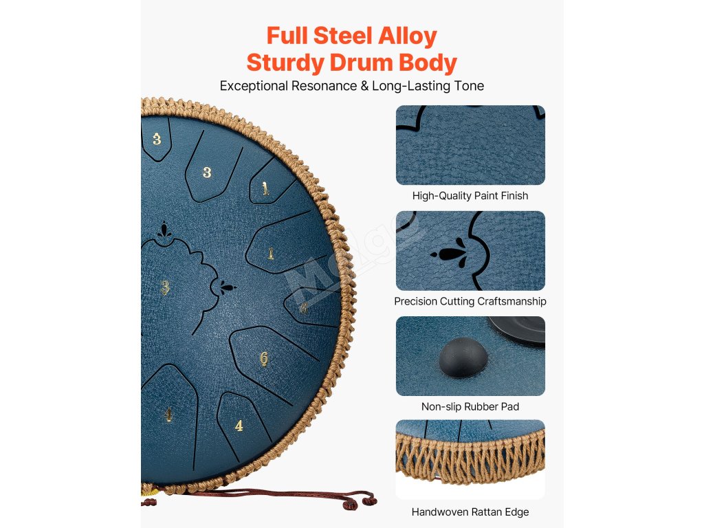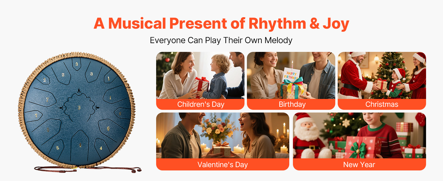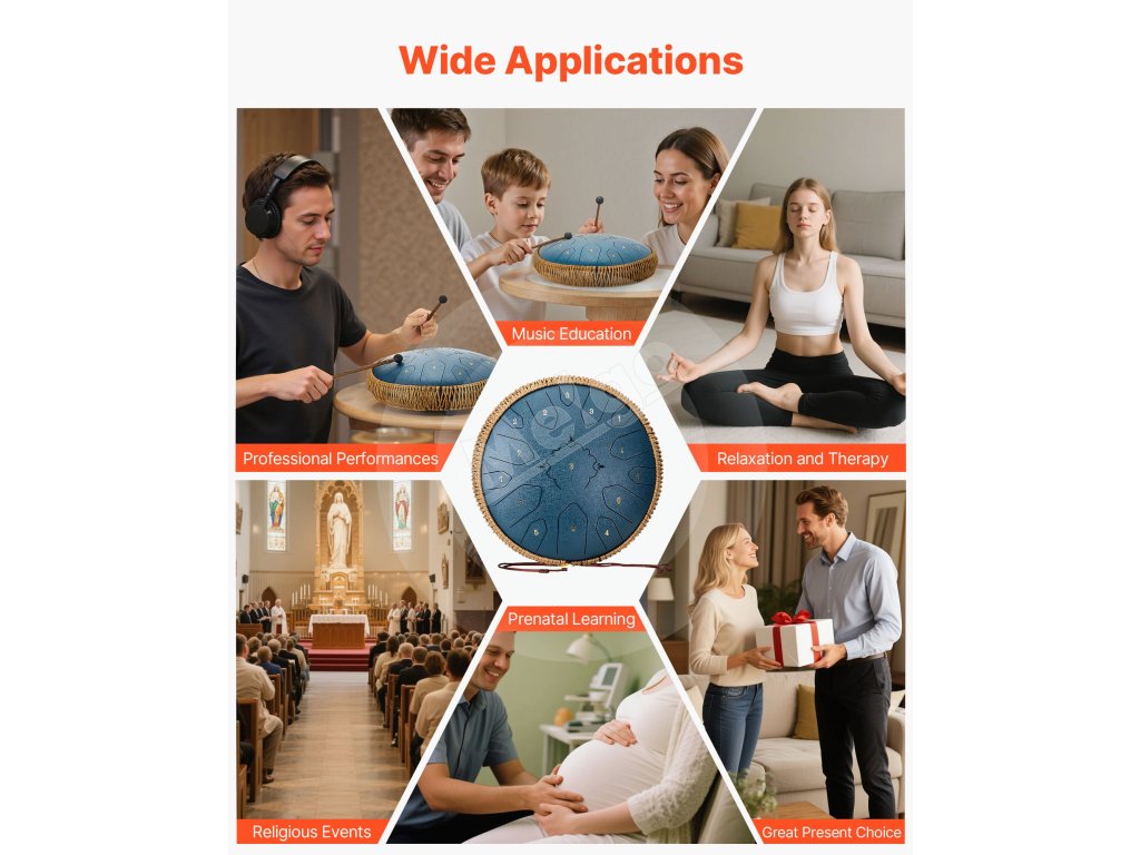 Náš oceľový bubon vydáva éterický a čistý tón, ktorý lieči myseľ. Je to premyslená voľba pre priateľov na zmiernenie stresu a nájdenie pokoja. Pre deti podnecuje zvedavosť, pestuje hudobné cítenie a podporuje ranú hudobnú výchovu. Ideálny darček na narodeniny, festivaly a výročia.