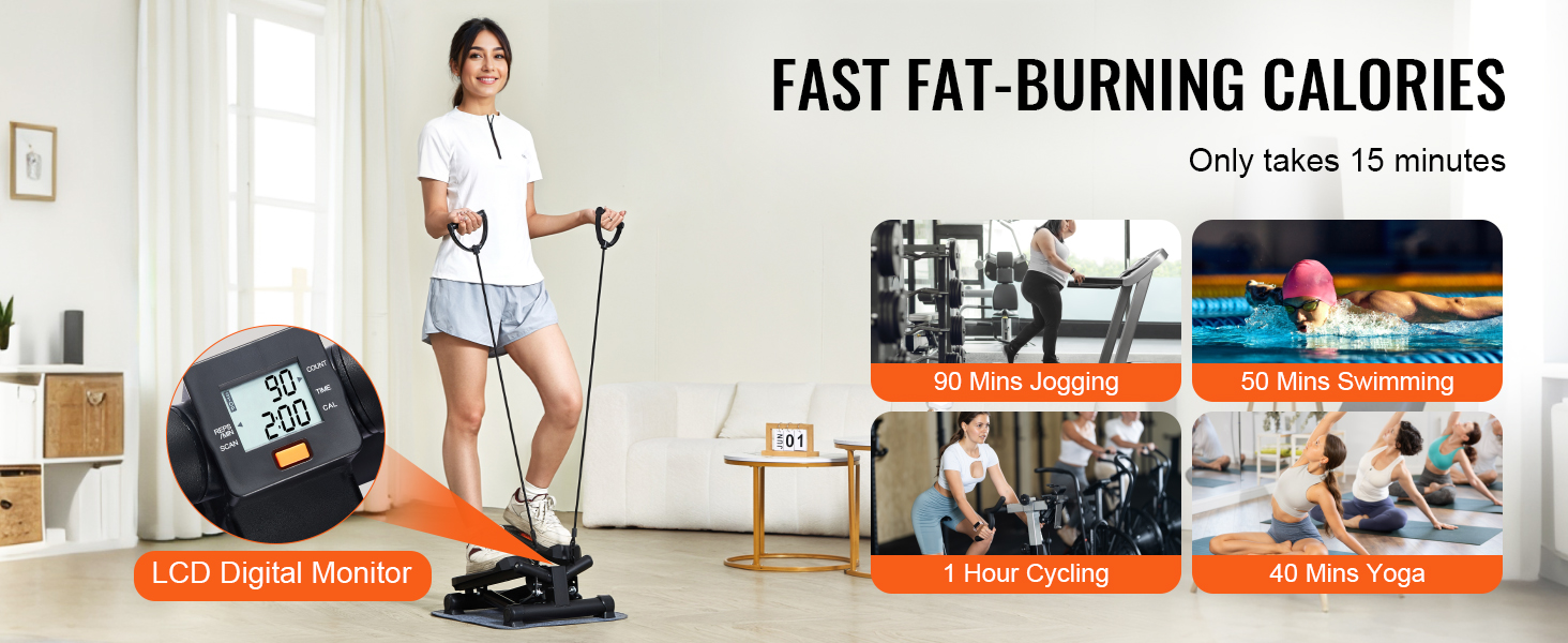 Digitálny displej na stepperi zaznamenáva vaše kroky, čas a spálené kalórie. To vám pomôže lepšie pochopiť váš pokrok pri cvičení, pomôže vám to pri ďalších krokoch vášho cvičebného plánu, vďaka čomu bude vaše cvičenie účelnejšie a efektívnejšie.