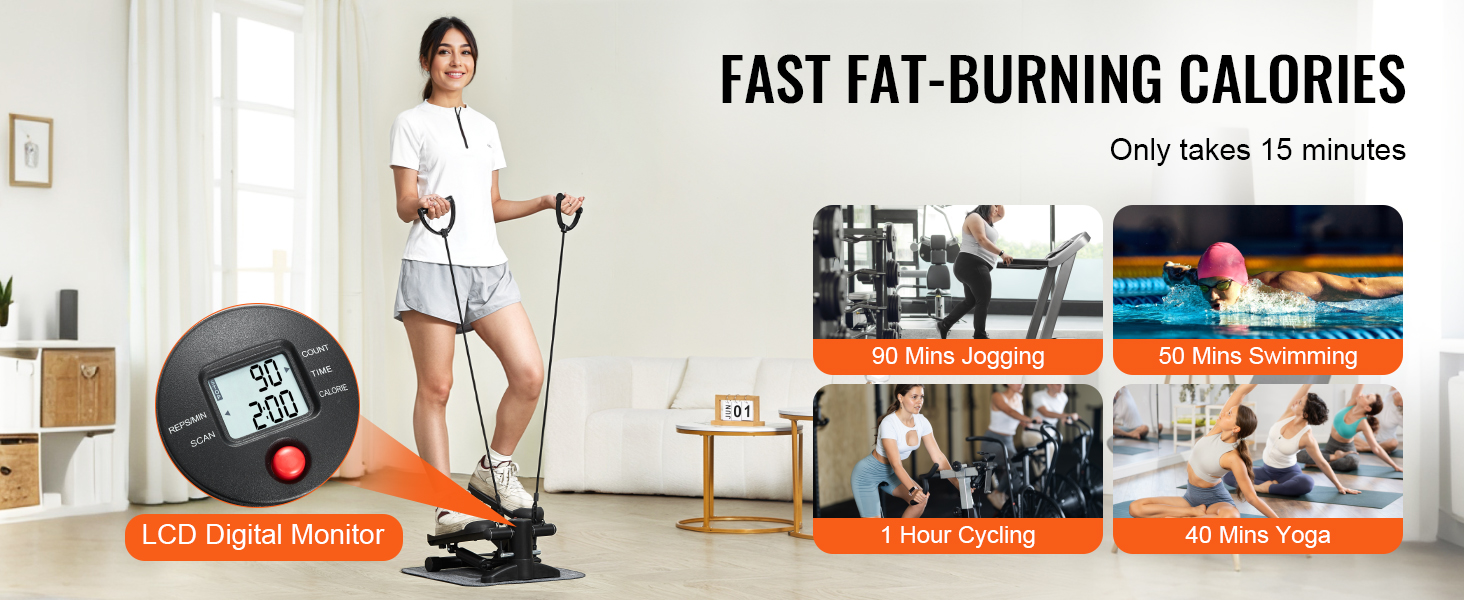 Digitálny displej na stepperi zaznamenáva vaše kroky, čas a spálené kalórie. To vám pomôže lepšie pochopiť váš pokrok pri cvičení, pomôže vám to pri ďalších krokoch vášho cvičebného plánu, vďaka čomu bude vaše cvičenie účelnejšie a efektívnejšie.
