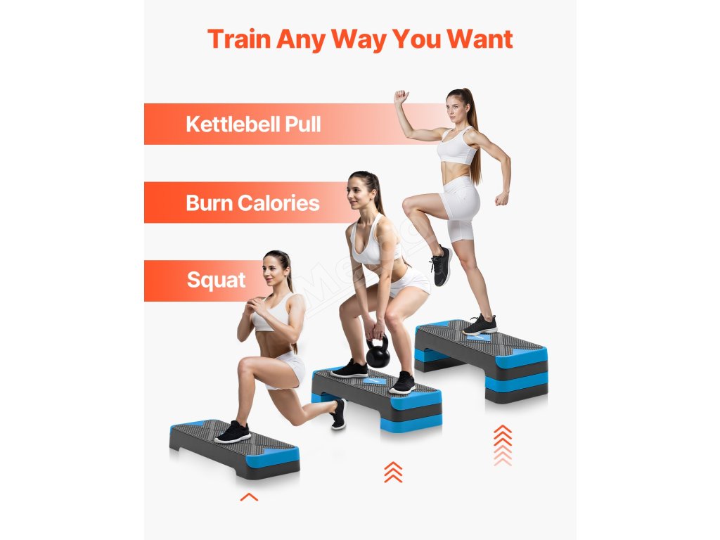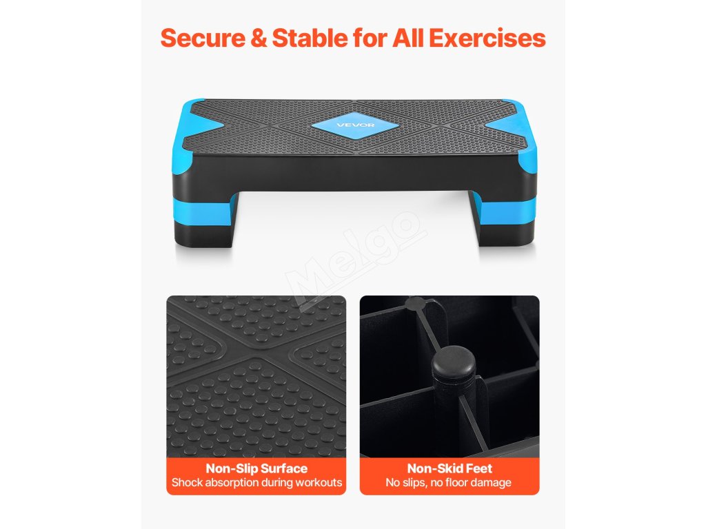 Aeróbny step 28-inch nastaviteľná výška, 4 nástavce, protišmyk, modrý