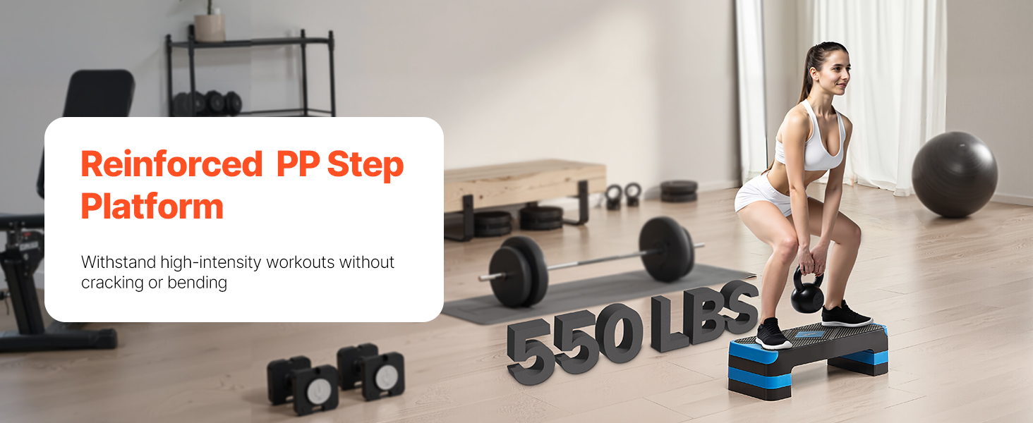 Spevnená stepová platforma z PP odolá výbušným skokom, úderom s činkami a intenzívnemu kardio cvičeniu bez toho, aby praskla alebo sa ohla. Vytvorená pre športovcov, dôveryhodná pre posilňovne.
