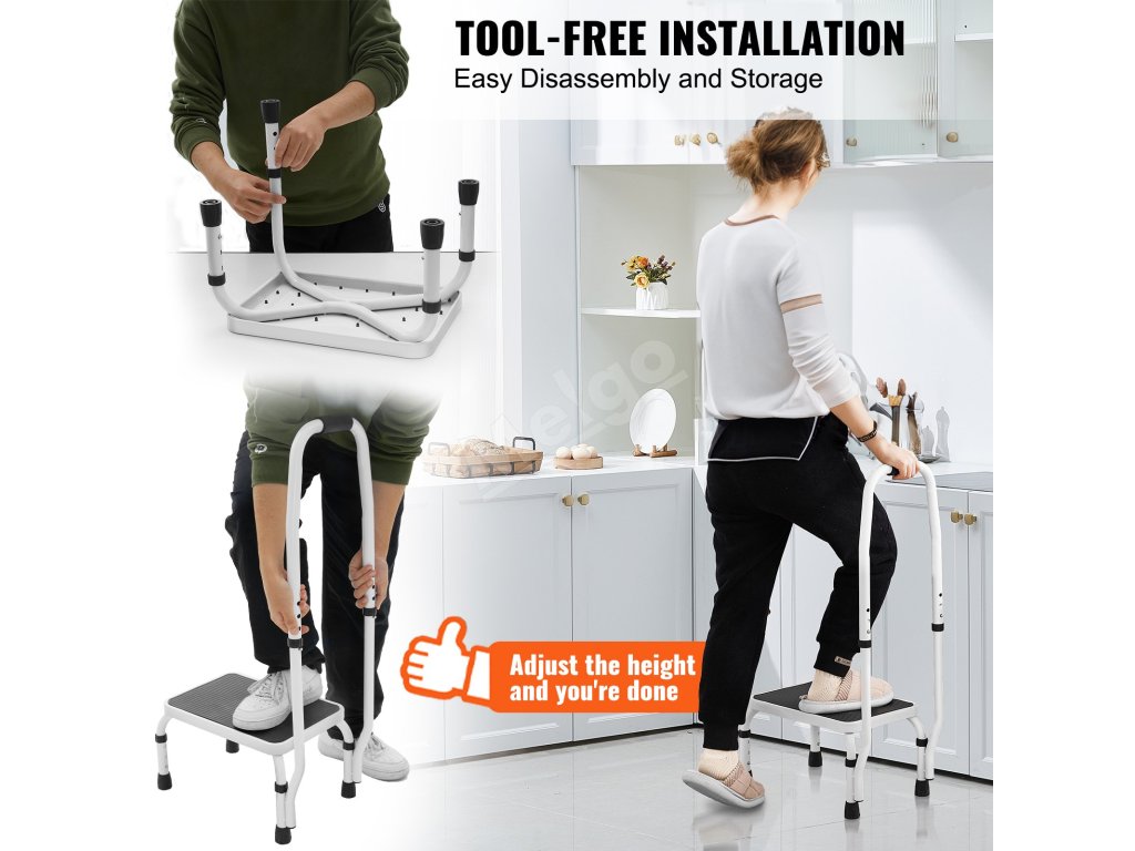 Schodík 1-stupňový nosnosť 150KG, 3 nastaviteľné výšky, s rukoväťou