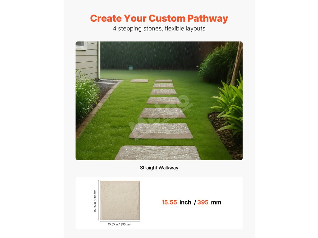 Dodáva sa so 4 nášľapnými kameňmi, ktoré vyhovujú rôznym usporiadaniam. Či už vytvárate záhradnú cestičku, chodník pri bazéne, trávnatý chodník alebo trasu na terasu, tieto nášľapné kamene vám pomôžu navrhnúť vlastný vonkajší chodník v prírodnom štýle.