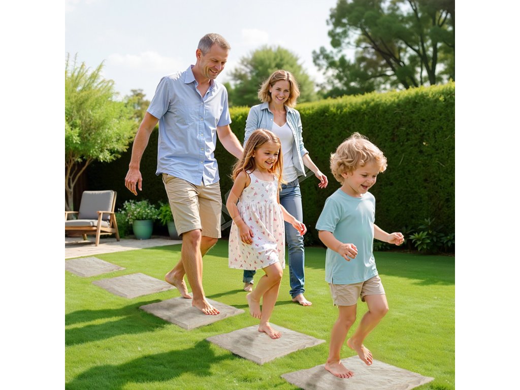 Vyvýšený textúrovaný povrch poskytuje protišmykovosť a zostáva chladný pod nohami - ideálny na letné prechádzky naboso. Hladké zaoblené hrany zaisťujú bezpečnosť pre deti a domáce zvieratá a ponúkajú pohodlnú a rodinnú cestu.