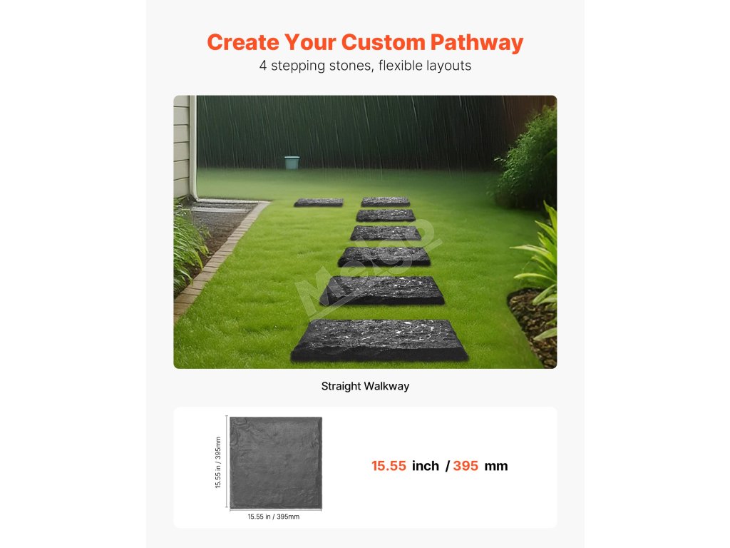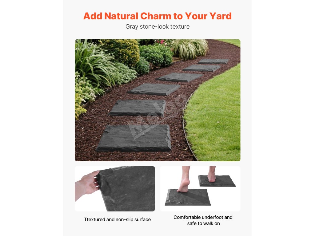 Dodáva sa so 4 nášľapnými kameňmi, ktoré vyhovujú rôznym usporiadaniam. Či už vytvárate záhradnú cestičku, chodník pri bazéne, trávnatý chodník alebo trasu na terasu, tieto nášľapné kamene vám pomôžu navrhnúť vlastný vonkajší chodník v prírodnom štýle.