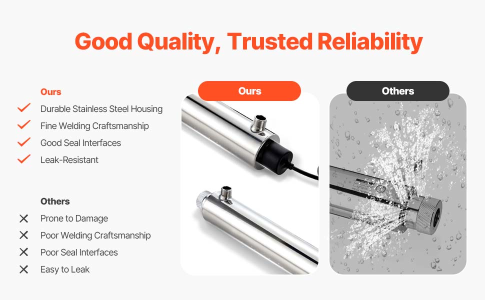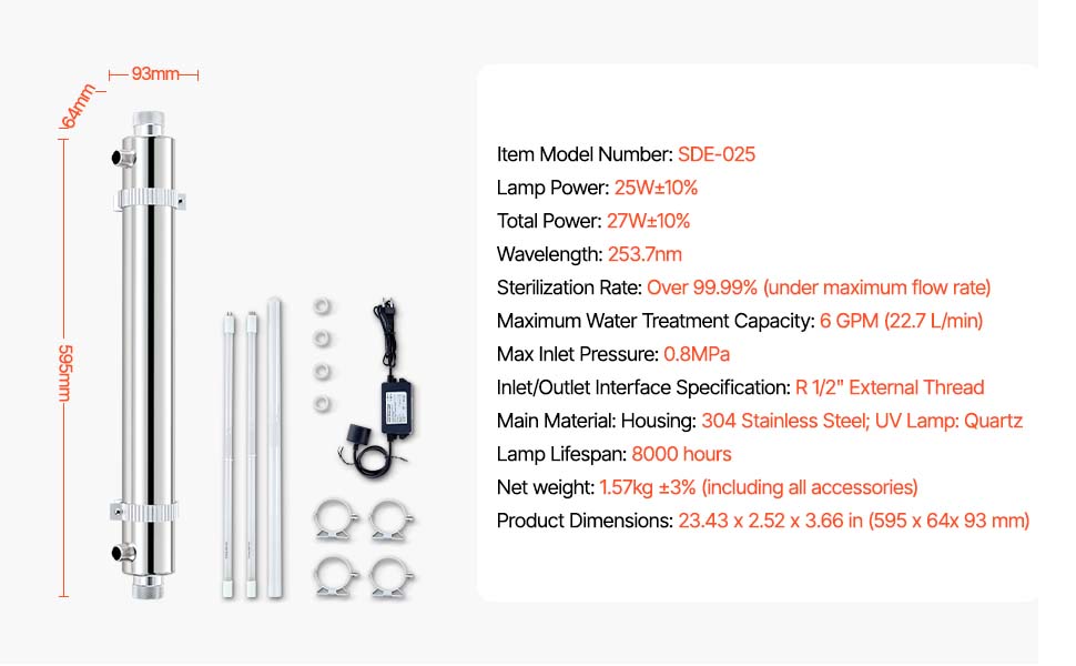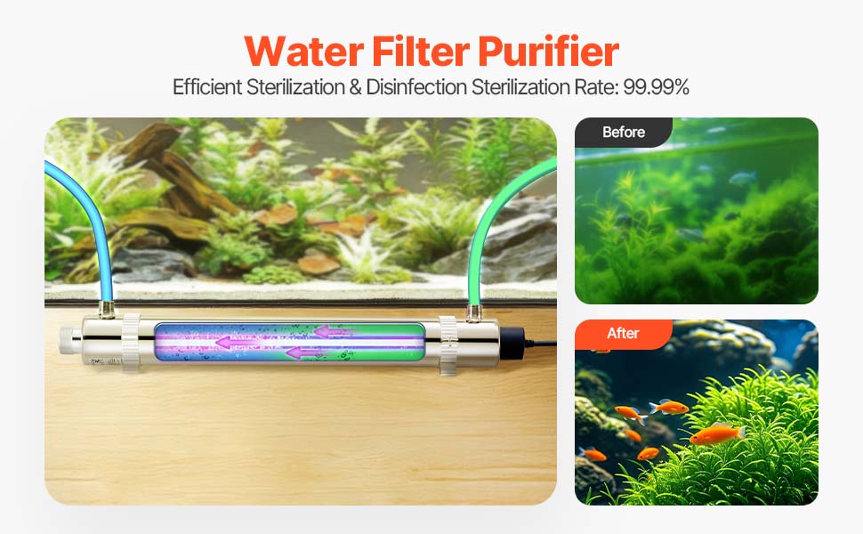 Ultrafialový filter čističa vody poskytuje 99,99 % sterilizáciu pre čistú vodu bez baktérií. Vďaka odolnej komore z nehrdzavejúcej ocele a UV lampe s životnosťou až 8 000 hodín zaručuje dlhodobý výkon. Jednoduchá inštalácia a obsluha, vychutnajte si vyčistenú vodu okamžite!