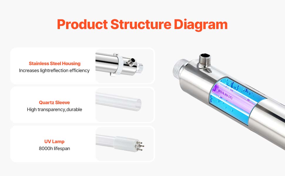 Inovatívna trojvrstvová konštrukcia integruje komoru z nehrdzavejúcej ocele, puzdro z kremenného skla a UV lampu, čo výrazne zvyšuje účinnosť odrazu ultrafialového žiarenia. Vďaka pozoruhodnej životnosti UV lampy až 8 000 hodín poskytuje tento filter predĺžený a stály výkon.