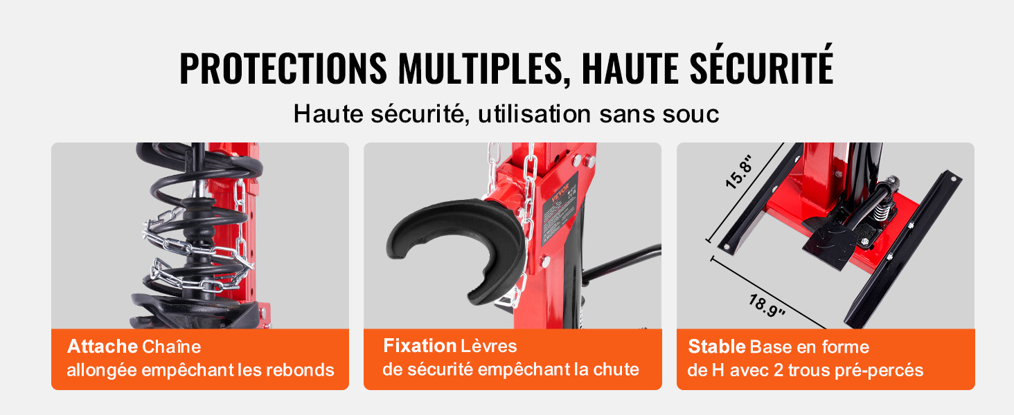 Na maximalizáciu bezpečnosti pri demontáži a montáži pružín sme integrovali bezpečnostné jazýčky, predĺženú bezpečnostnú reťaz a stabilnú základňu v tvare písmena H. Tieto prvky zabezpečujú bezpečnú prevádzku a minimalizujú riziko rozkývania.