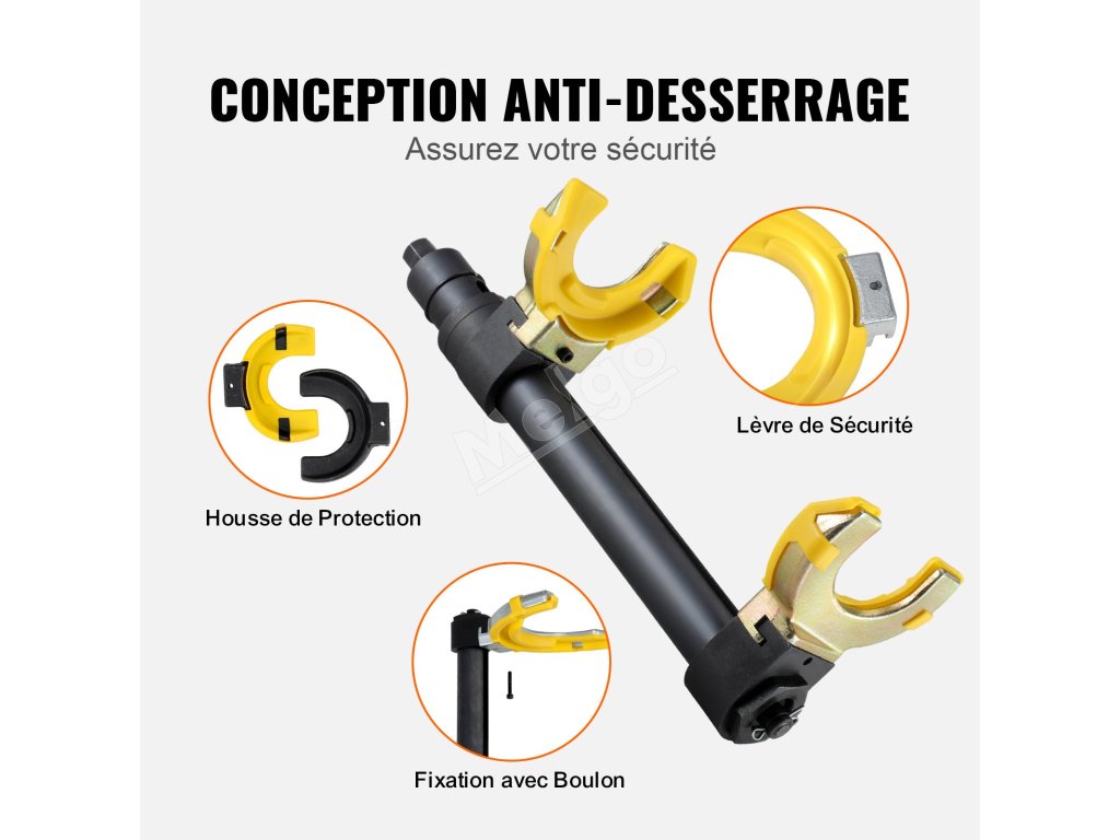 Aby sme maximalizovali bezpečnosť pri demontáži a montáži pružín, integrovali sme ochranné objímky proti skĺznutiu a poškriabaniu, bezpečné uzamykacie bezpečnostné jazýčky a skrutkové spoje. Tieto prvky zabezpečujú bezpečné uchopenie svoriek a pružín, čím sa minimalizuje riziko ich uvoľnenia.