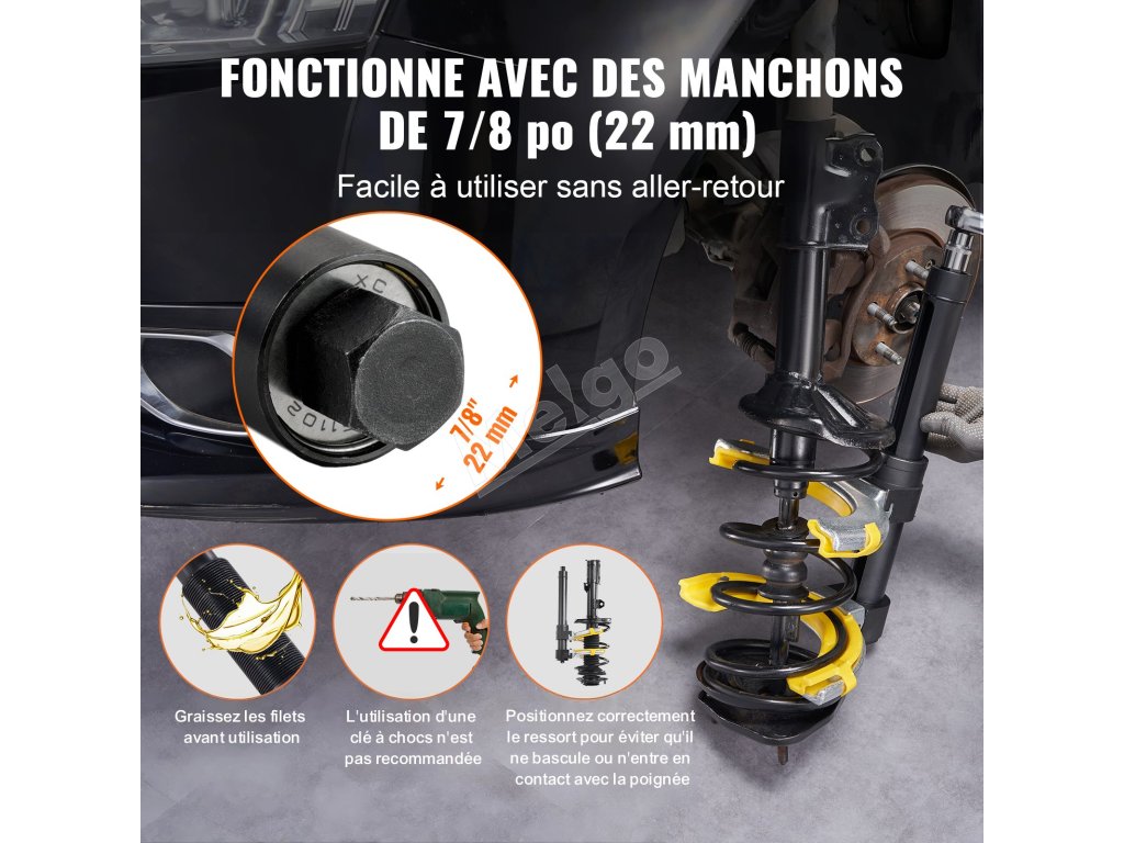 Vďaka výnimočnej nosnosti a širokému rozsahu stlačiteľnosti náš kompresor pružín bez námahy demontuje pružiny z motocyklov, automobilov, pickupov, SUV a ďalších vozidiel. Vychutnajte si pohodlie pri demontáži pružín tlmičov priamo vo vozidle, čo zjednodušuje výmeny a inštalácie.