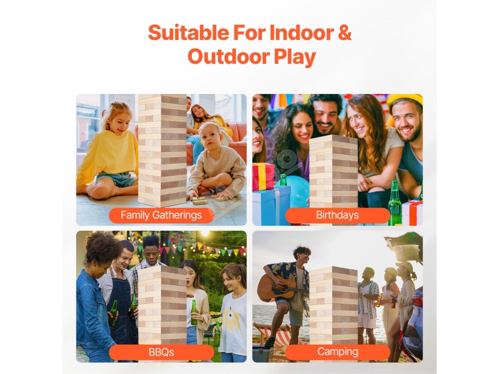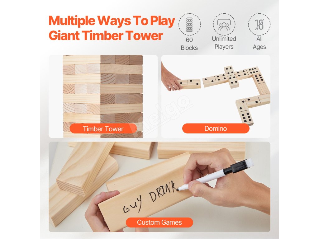 Táto drevená hra na skladanie veží dodá nekonečnú zábavu každej udalosti a podporuje komunikáciu a kamarátstvo. Je to vynikajúci spôsob, ako každý môže zažiť výzvu a úspech a zároveň prehĺbiť priateľstvá.
