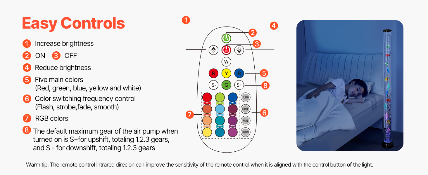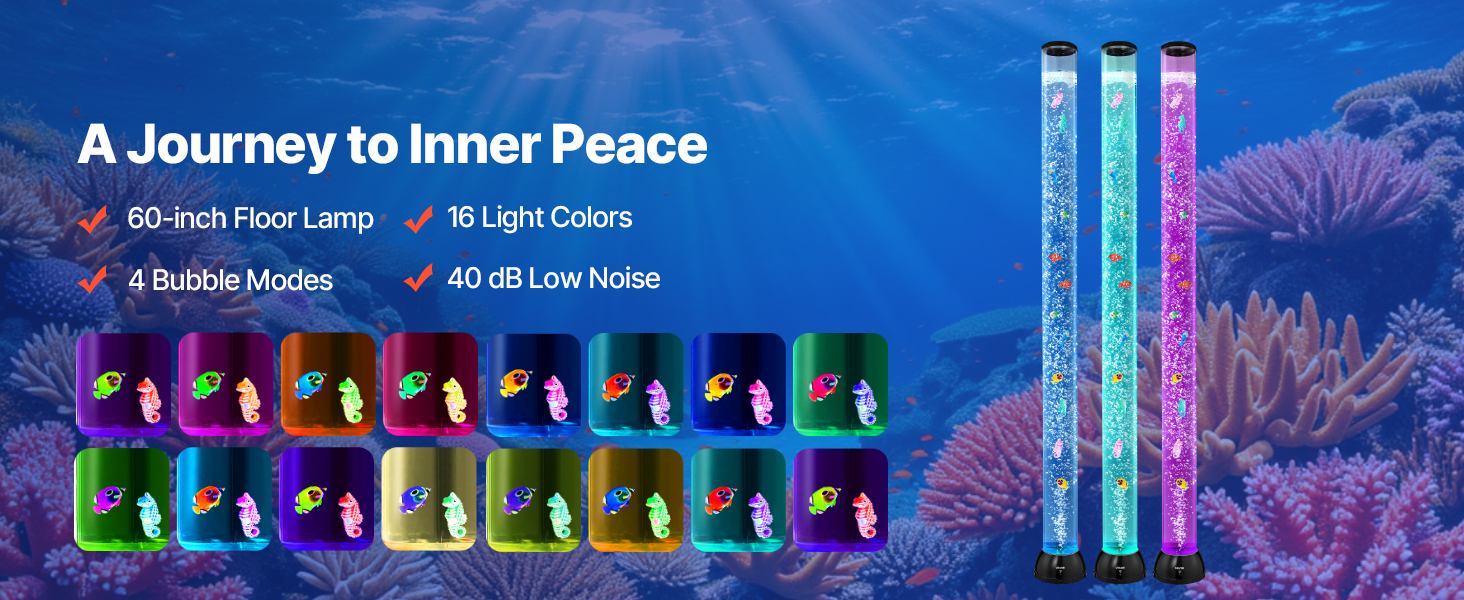 Naša zmyslová bublinková lampa, ideálna na zmiernenie každodenného stresu, pomáha vytvoriť pokojnú, relaxačnú atmosféru na zlepšenie nálady.