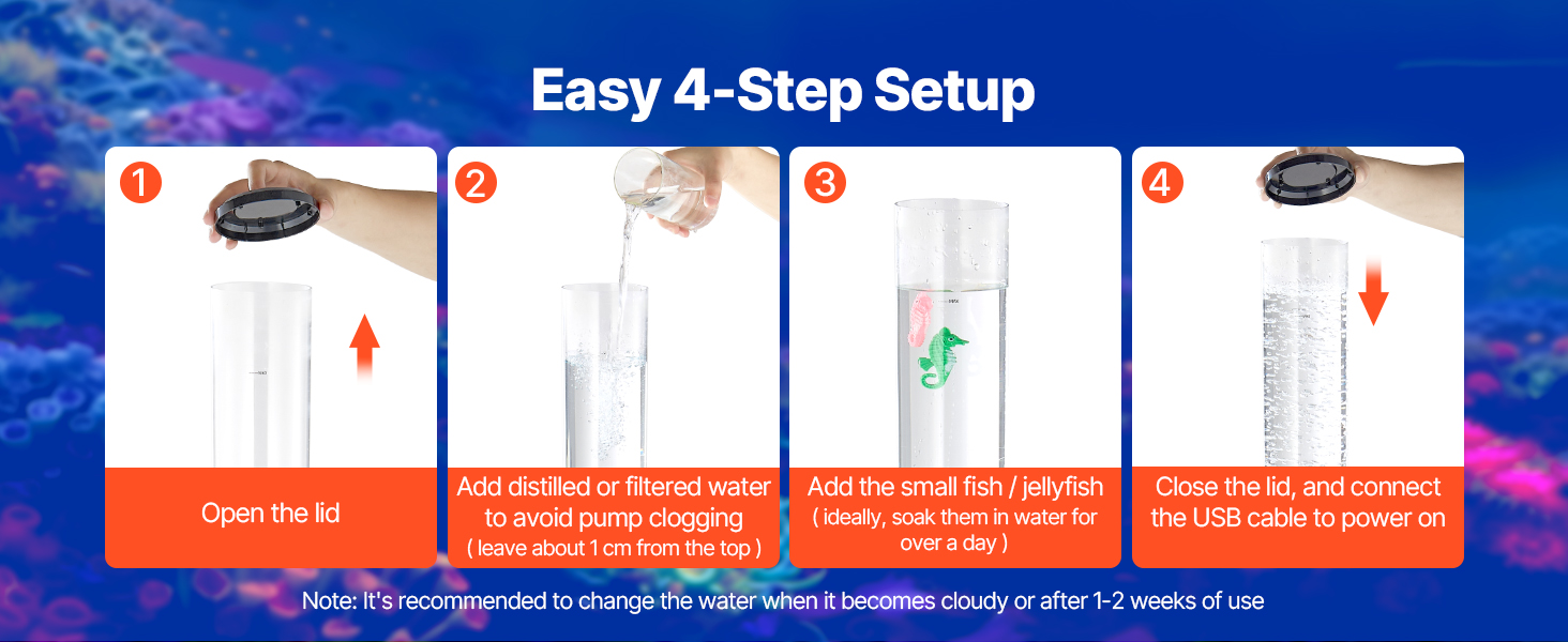 Jednoduchá inštalácia v 4 krokoch vám umožní užívať si novú bublinkovú lampu v priebehu chvíľky!