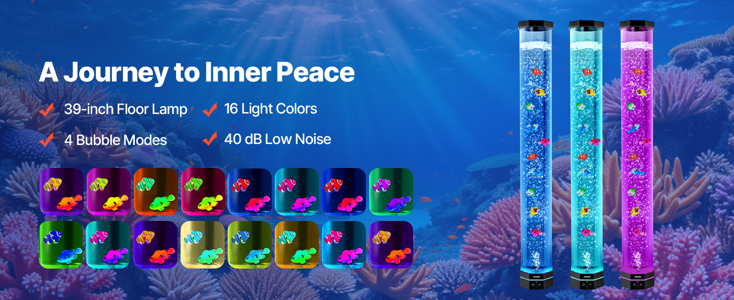 Táto bublinová lampa so žiarivými farbami vnáša do vášho priestoru pokojný podmorský svet a vytvára pokojné, zmyslové prostredie.
