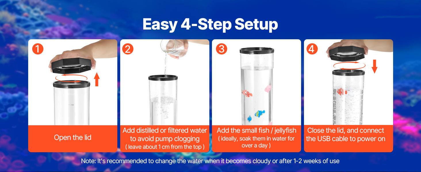Jednoduchá inštalácia v 4 krokoch vám umožní užívať si novú bublinkovú lampu v priebehu chvíľky!