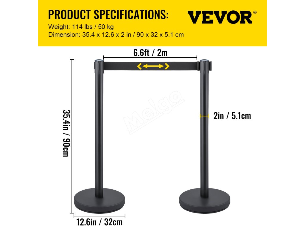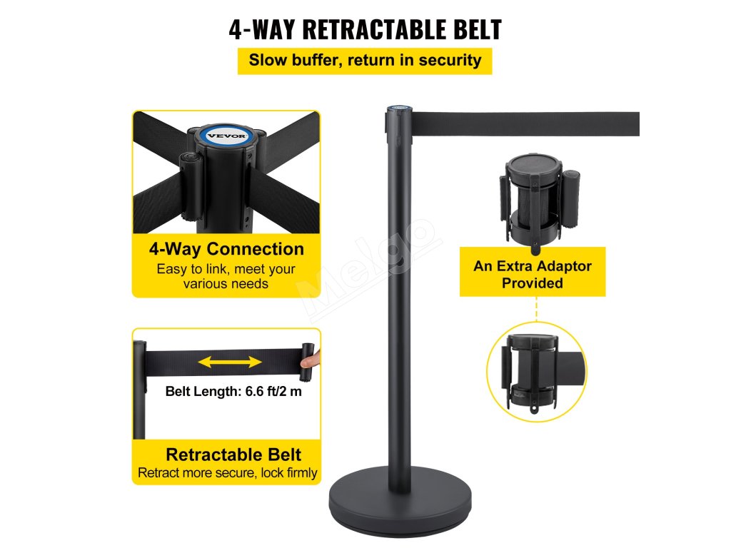 Sťahovací pás je vybavený polyesterom, ktorý je odolný bez vyblednutia. Pás sa dá ľahko natiahnuť, aby sa upravila vzdialenosť medzi dvoma stojanmi, a po odomknutí sa automaticky stiahne. Dĺžka pásu je až 6,6 stopy / 2 m, zaťahovanie je bezpečné a flexibilné.