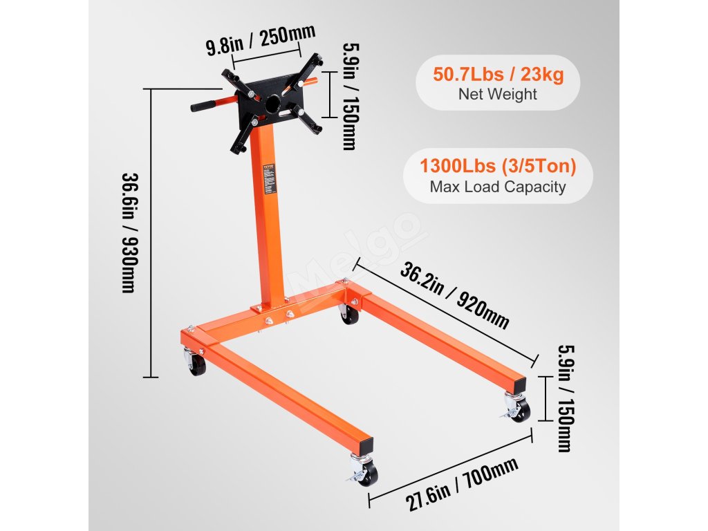 Ide o pevný oceľový rám. Udrží motory s hmotnosťou až 1300 libier. Vďaka tomu je vhodný pre veľké a ťažké motory. Robustná konštrukcia zaručuje, že zvládne náročné opravárenské práce. Oceľový rám je skonštruovaný tak, aby vydržal veľké zaťaženie. Je to spoľahlivá voľba pre profesionálnych mechanikov aj domácich mechanikov? Odolnosť stojana znamená, že vydrží dlhé roky. Preto má obrovskú hodnotu v každej garáži alebo dielni.