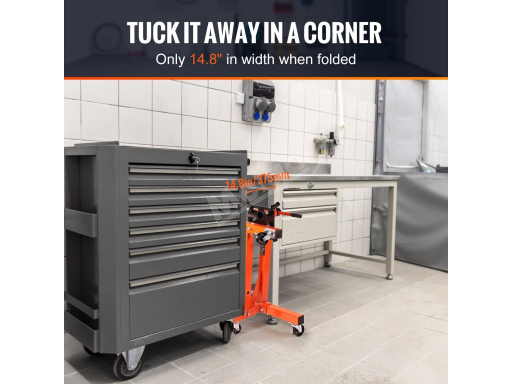 Stojan na motor VEVOR má priestorovo úsporný skladací mechanizmus. Vďaka tomu ho možno ľahko uskladniť, keď sa nepoužíva. Stojan sa kompaktne skladá, čím šetrí cenné miesto vo vašej garáži alebo dielni. Je obzvlášť užitočný, ak máte obmedzený úložný priestor. Stojan môžete rýchlo zložiť a rozložiť. Toto pohodlie vám zaručí, že budete mať svoj pracovný priestor usporiadaný. Okrem toho kompaktný dizajn stojana uľahčuje jeho prepravu. Môžete ho podľa potreby premiestňovať po svojom pracovisku. To prispieva k jeho celkovému pohodliu a praktickosti.