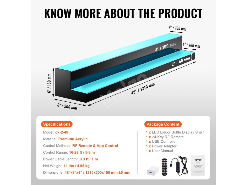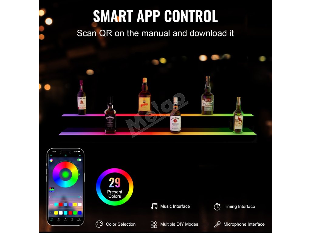 Led osvetlený stojan na fľaše 2 úrovne 48 inch akryl rf+app ovládanie