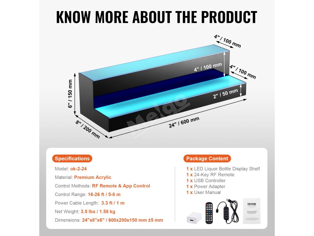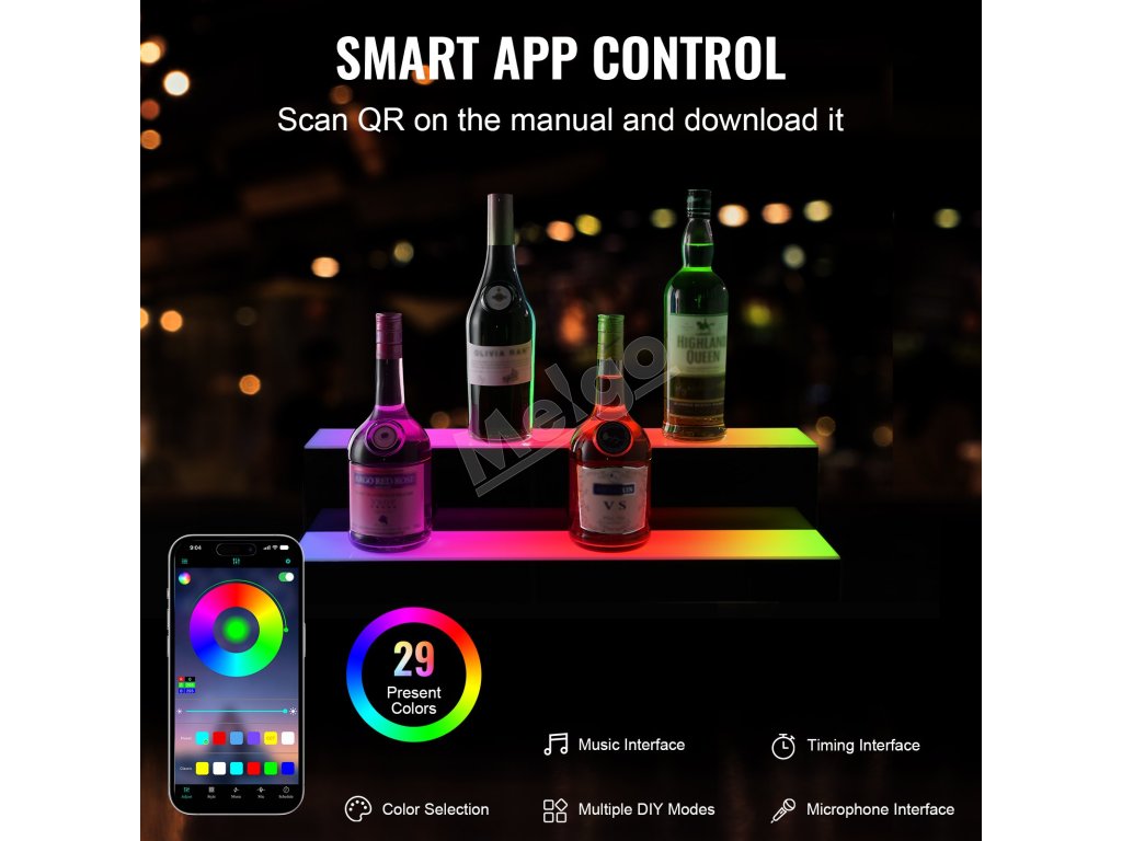 Led stojan na fľaše 2 stupne 24 inch akryl rf a app multicolor