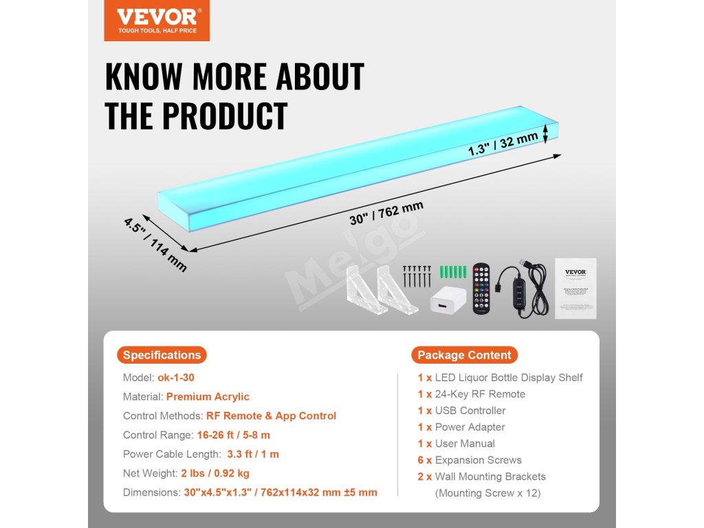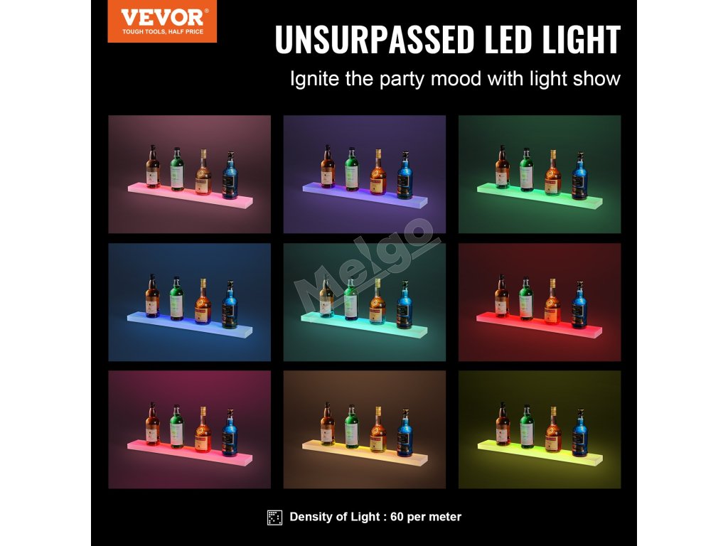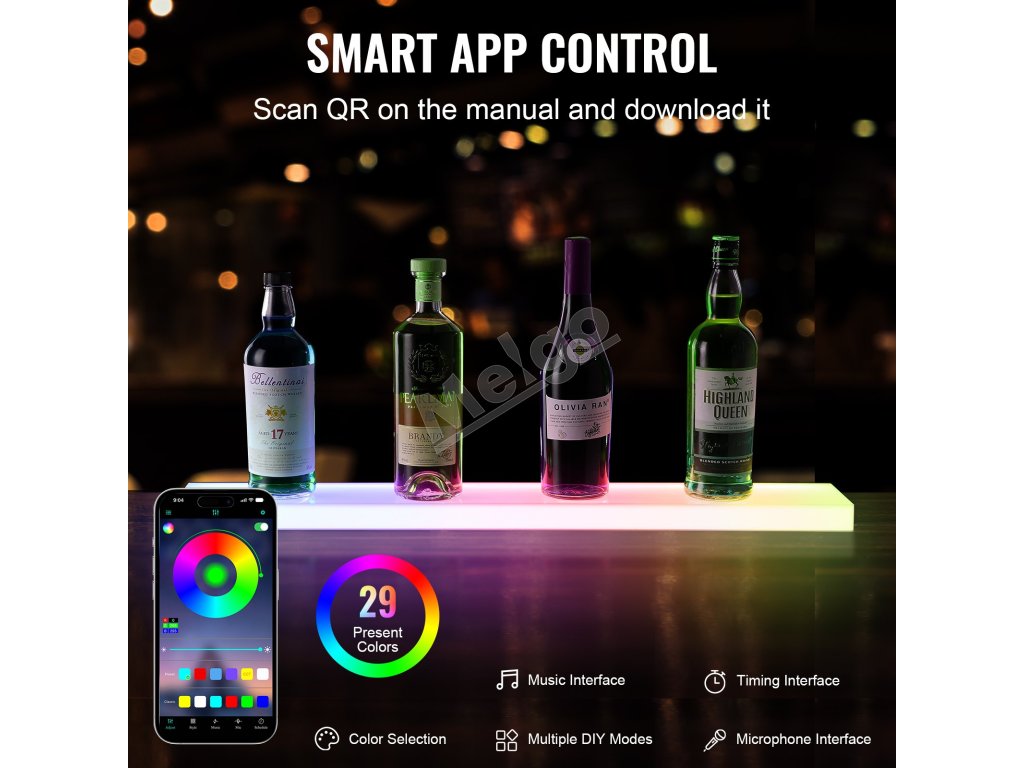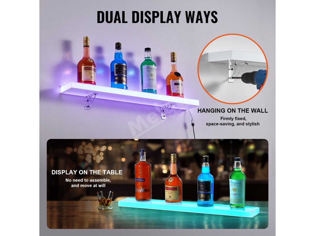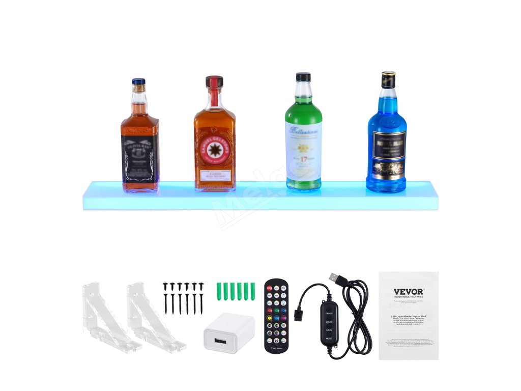 Osvetlená nástenná polica na fľaše 1-úrovňová 30" s diaľk. a app ovl.