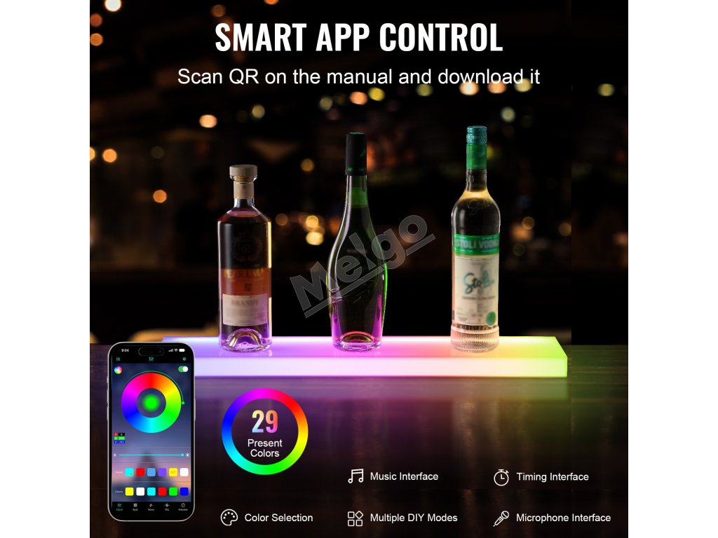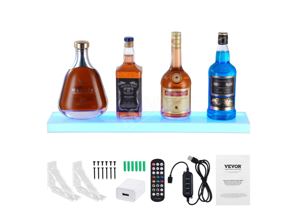 Svietiaci nástenný regál na fľaše 1 úroveň 24 inch akryl led, rf a app
