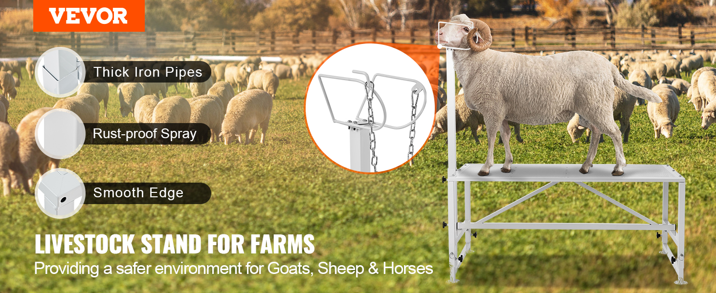 Tento stojan na kozy a ovce je nielen pevný a odolný, ale aj natretý antikoróznou farbou v spreji, aby sa zabezpečilo dlhodobé používanie v daždi alebo v daždi. Starostlivo navrhnutý stojan s hladkými hranami minimalizuje riziko poranenia zvierat a spríjemní vám prácu na farme.