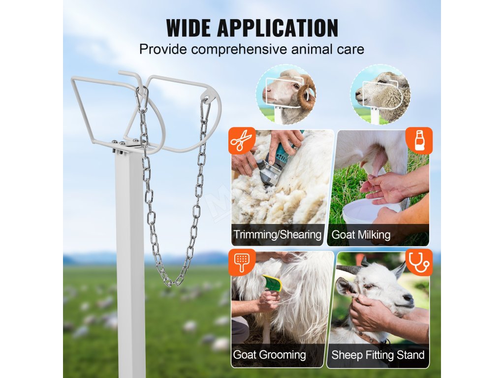 Tento stojan na kozy a ovce je nielen pevný a odolný, ale aj natretý antikoróznou farbou v spreji, aby sa zabezpečilo dlhodobé používanie v daždi alebo v daždi. Starostlivo navrhnutý stojan s hladkými hranami minimalizuje riziko poranenia zvierat a spríjemní vám prácu na farme.