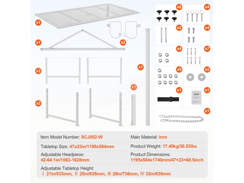 | Nastaviteľná výška stolovej dosky | Ⅰ 21in/533mm, Ⅱ 25in/635mm, Ⅲ 29in/736mm, Ⅳ 33in/838mm |