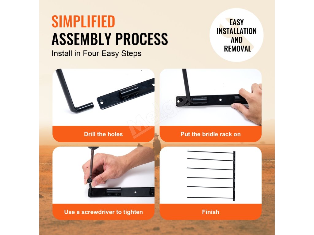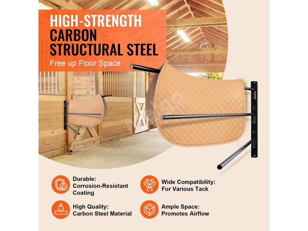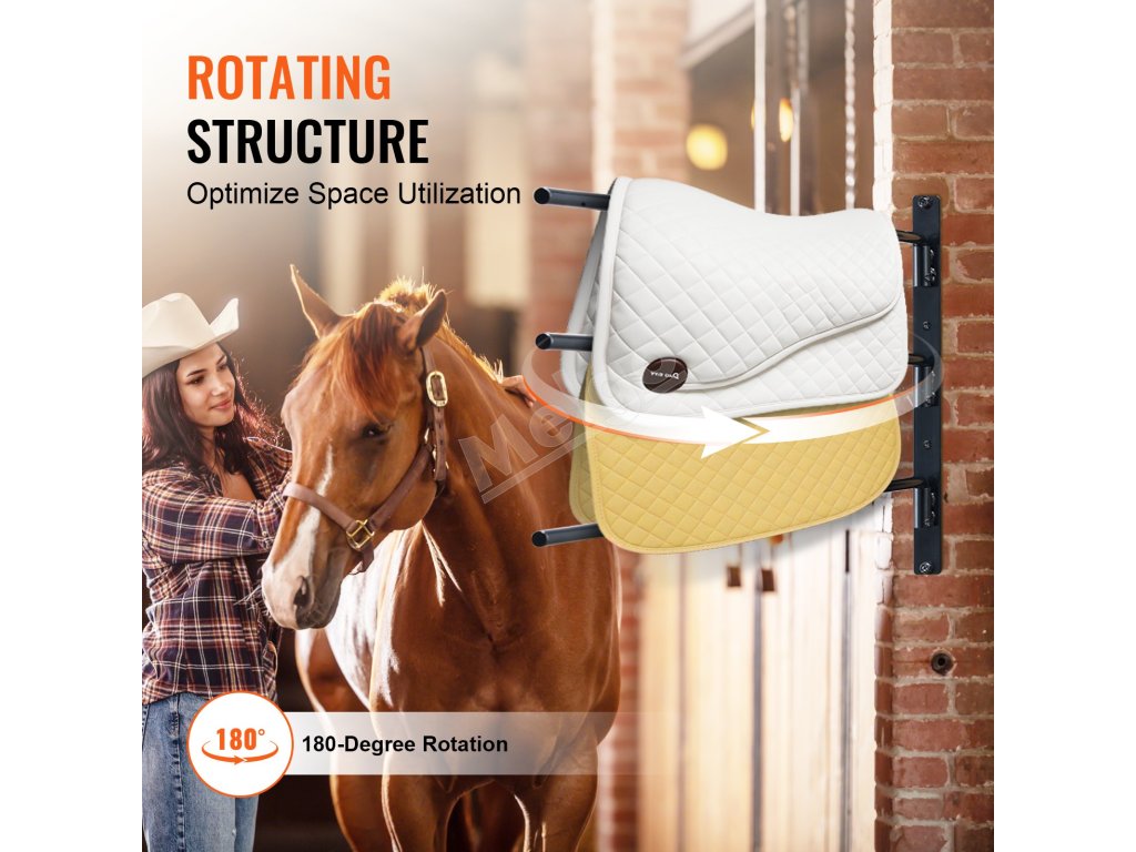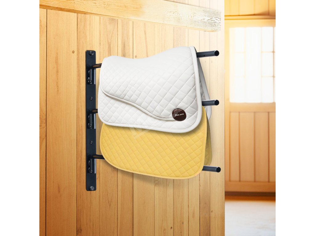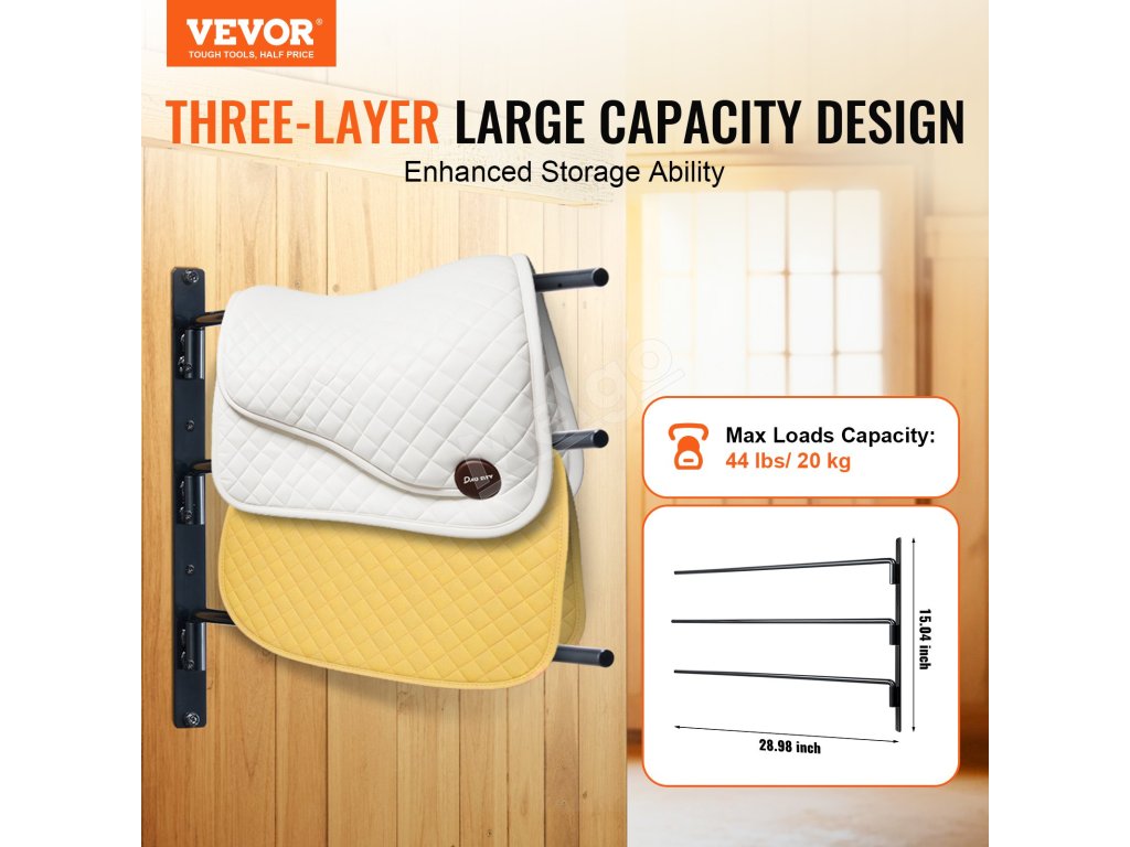 Tento trojvrstvový sedlový stojan má otočnú konštrukciu na jednoduchú organizáciu. Vďaka robustnej celooceľovej konštrukcii a úplnému zváraniu je odolný a prístupný. Zmestia sa doň rôzne sedlá a možno doň uložiť oblečenie a náradie, vďaka čomu udržíte poriadok vo svojom priestore. Nainštalujete ho len v štyroch jednoduchých krokoch!