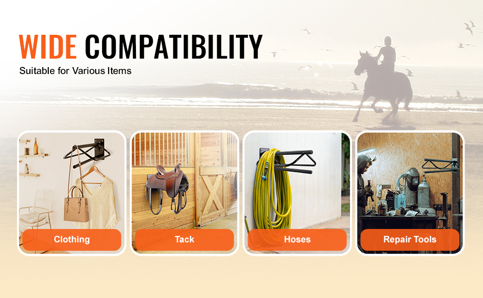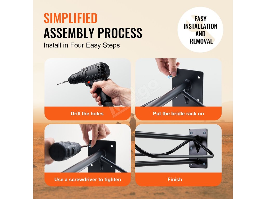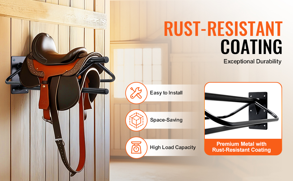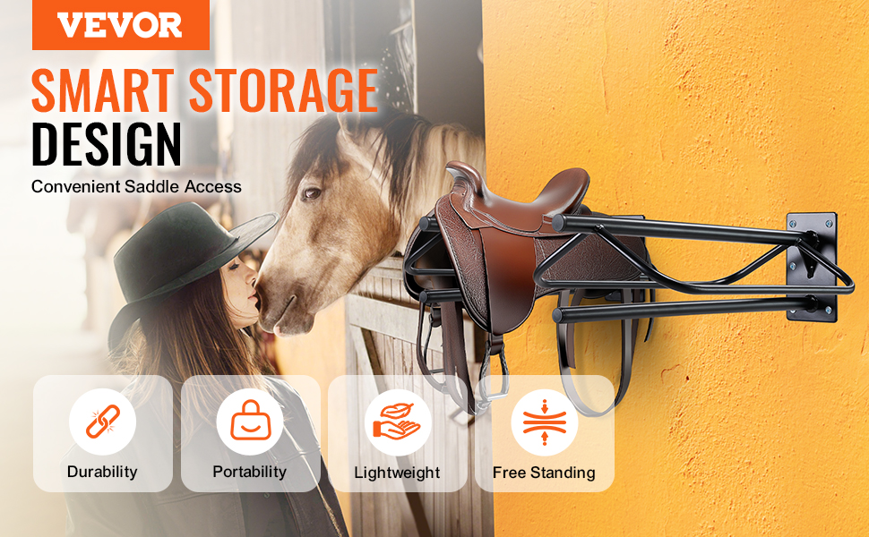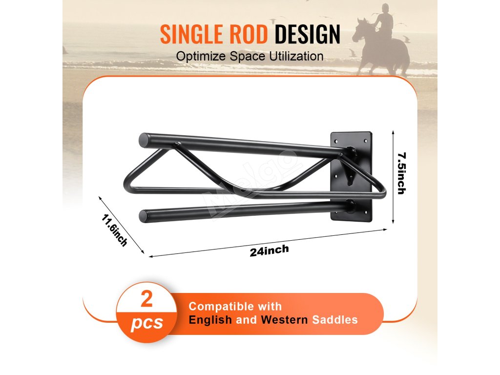 Rovný stojan na sedlo je vyrobený z vysokopevnostnej uhlíkovej ocele s úplným zváraním pre robustnú odolnosť. Jeho nástenný dizajn šetrí miesto a pojme anglické aj westernové sedlá, ako aj rôzne predmety, vďaka čomu je univerzálny pre rôzne nastavenia a optimalizuje váš priestor.