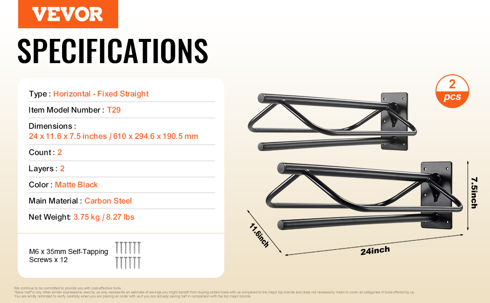 VEVOR Nástenný držiak na sedlá 2 balenia 23,8 x 12,6 x 10,2 palca