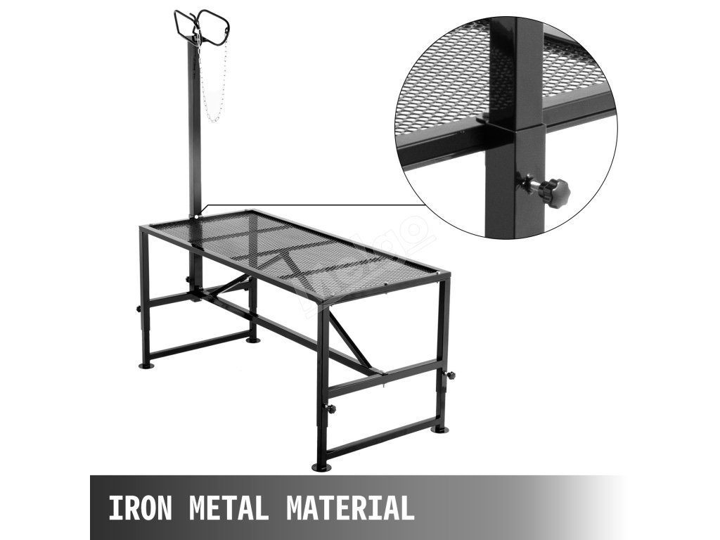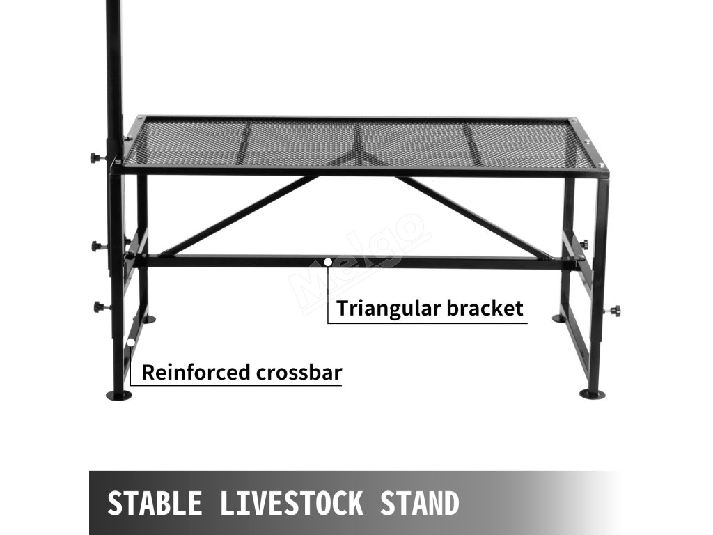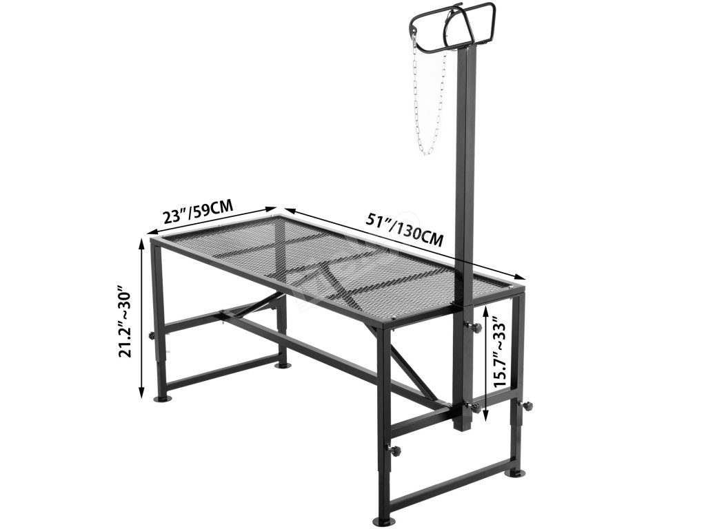 Vybavená silným klavírnym závesom, ktorým môžete nastaviť predné nohy a hlavičky na uľahčenie strihania a tiež pomáha rovnomerne rozložiť hmotnosť zvieraťa.