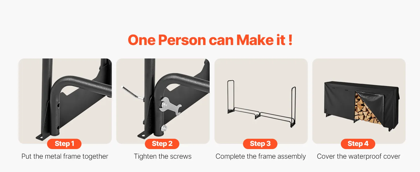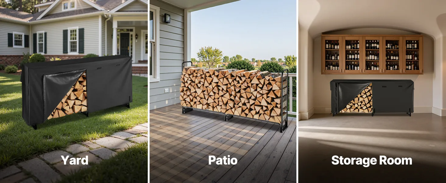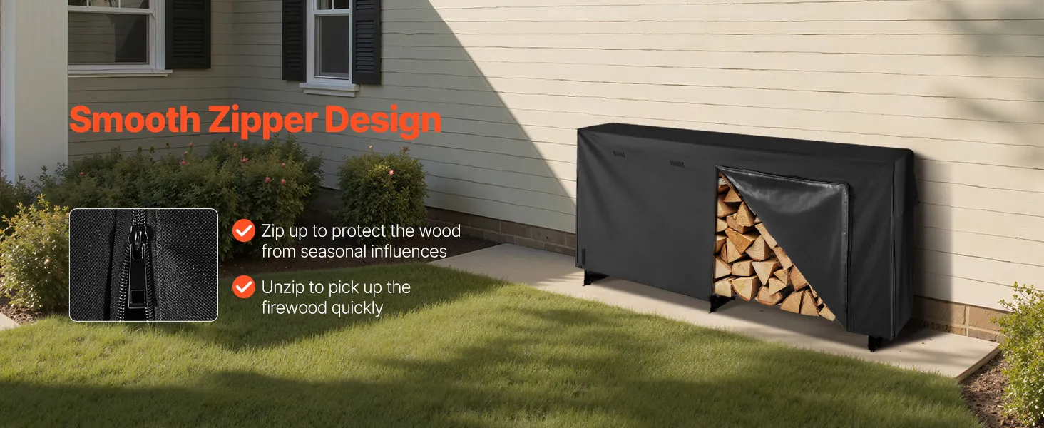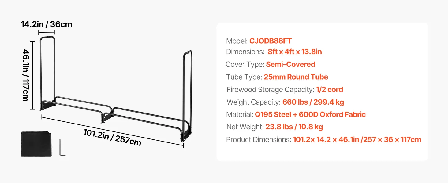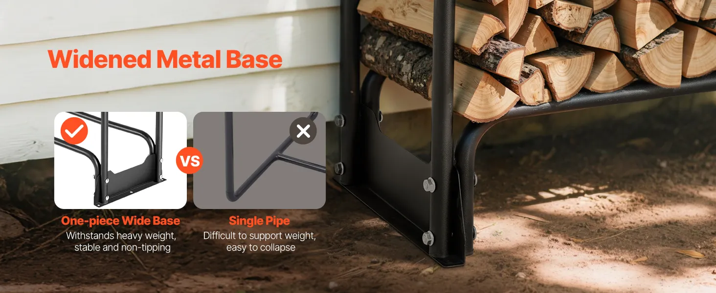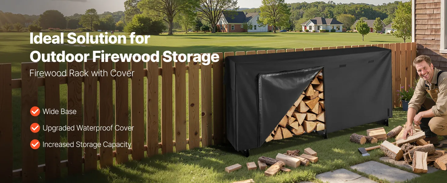 Tento ťažký stojan na palivové drevo unesie až 660 kg a pojme až 1/2 šnúry dreva. Je vybavený vodotesným a UV žiareniu odolným krytom, ktorý odolá slnku, dažďu aj snehu. Tento stojan je ideálny na verandy, záhrady, terasy a ďalšie miesta, kde udrží vaše palivové drevo v suchu, dobre vetrané a kedykoľvek pripravené na použitie.