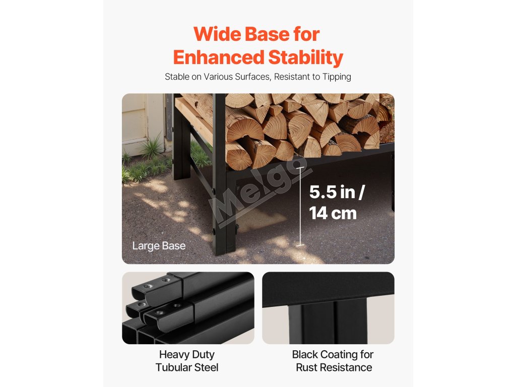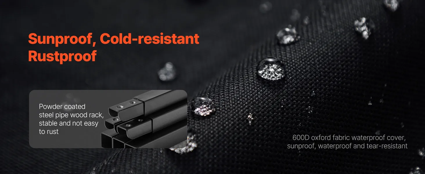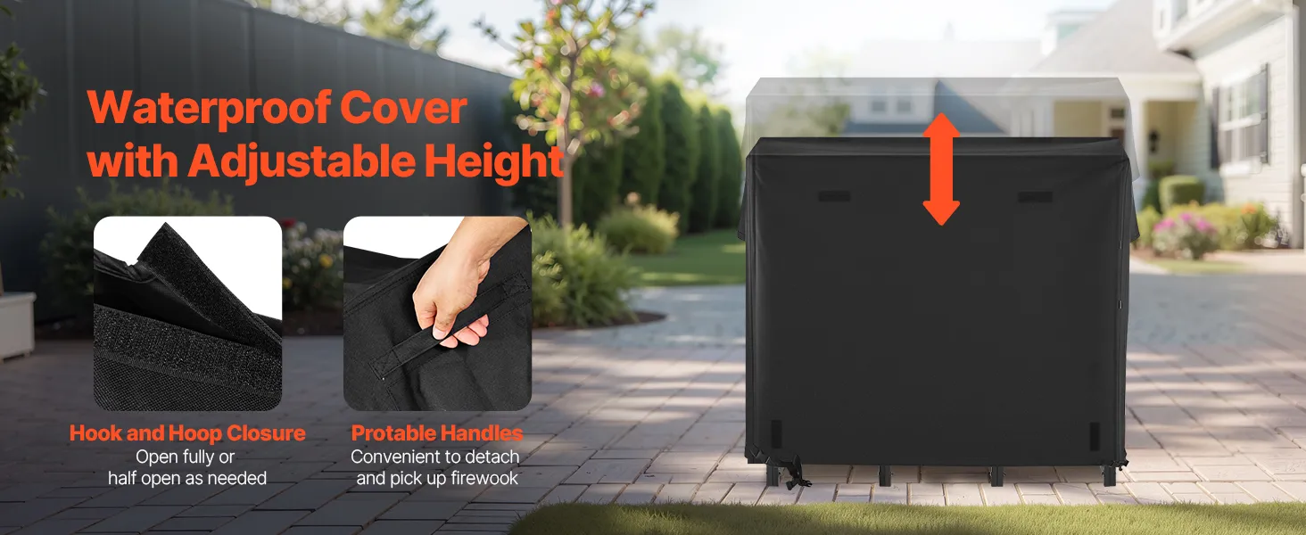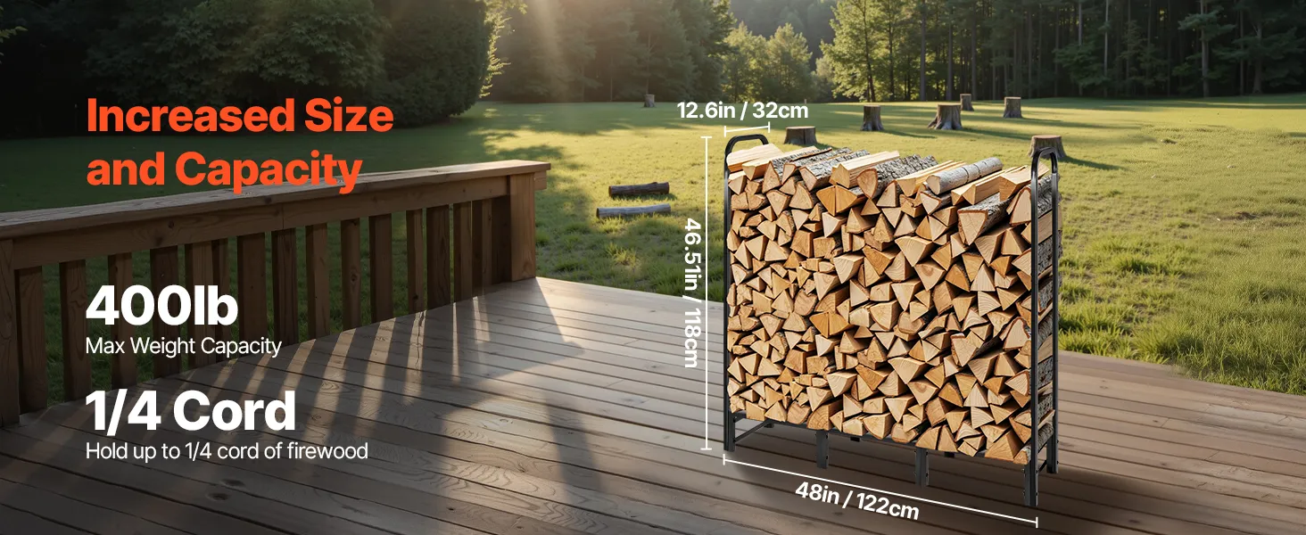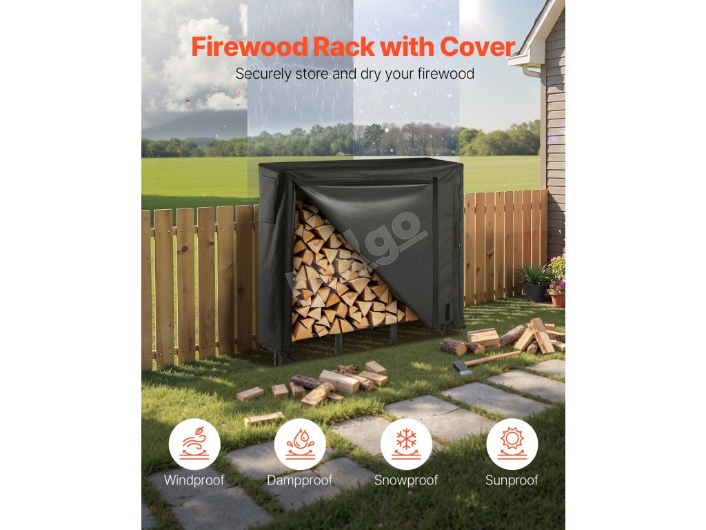 Tento ťažký stojan na palivové drevo unesie až 400 kg a pojme až 1/4 šnúry dreva. Je vybavený vodotesným a UV žiareniu odolným krytom, ktorý odolá slnku, dažďu aj snehu. Tento stojan je ideálny na verandy, záhrady, terasy a ďalšie miesta, kde udrží vaše palivové drevo v suchu, dobre vetrané a kedykoľvek pripravené na použitie.