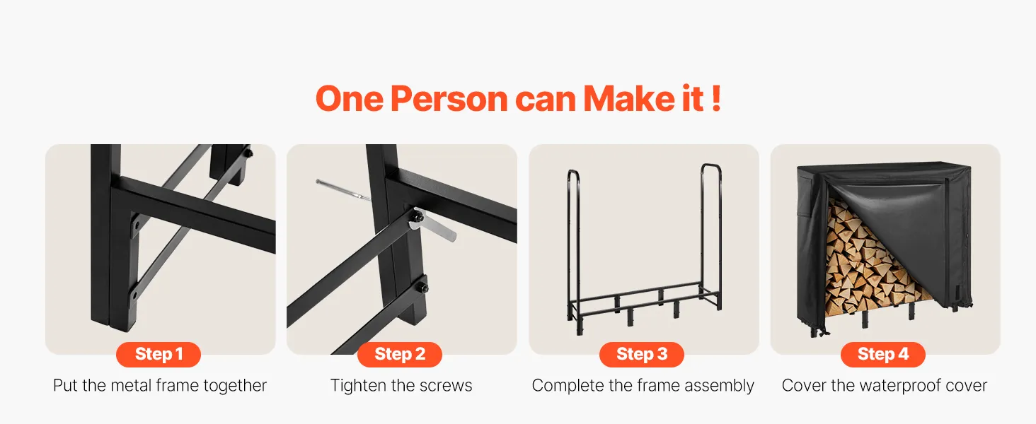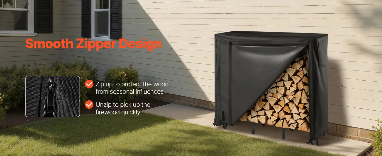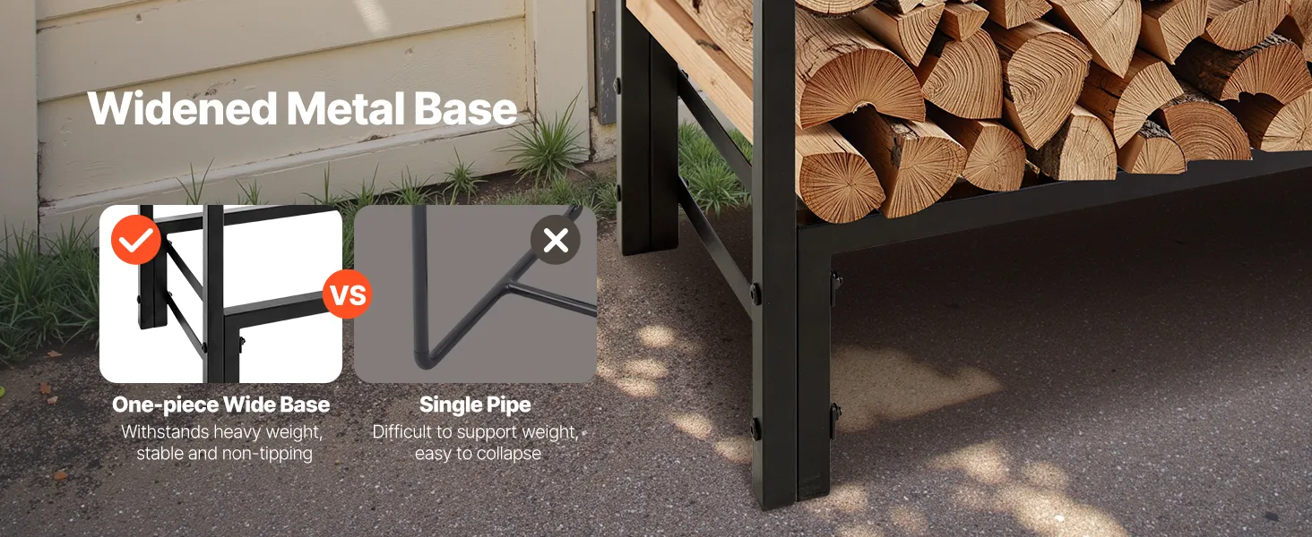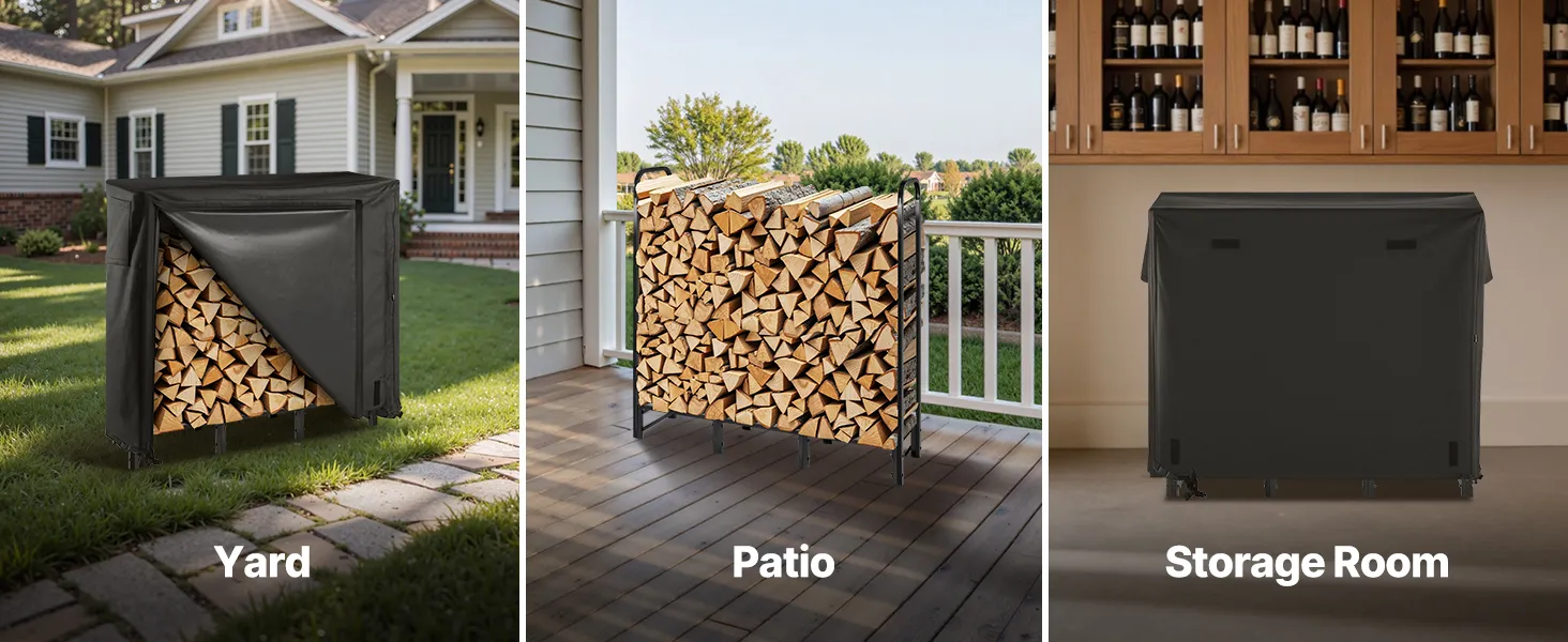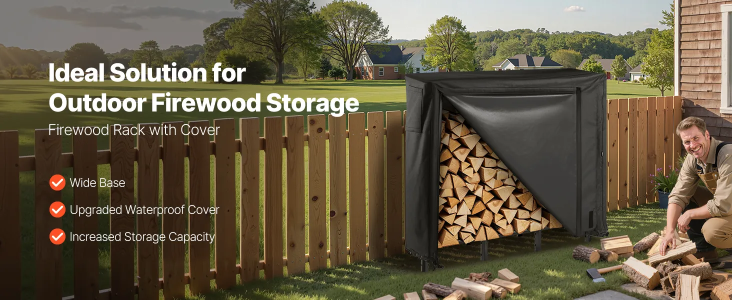 Tento ťažký stojan na palivové drevo unesie až 400 kg a pojme až 1/4 šnúry dreva. Je vybavený vodotesným a UV žiareniu odolným krytom, ktorý odolá slnku, dažďu aj snehu. Tento stojan je ideálny na verandy, záhrady, terasy a ďalšie miesta, kde udrží vaše palivové drevo v suchu, dobre vetrané a kedykoľvek pripravené na použitie.